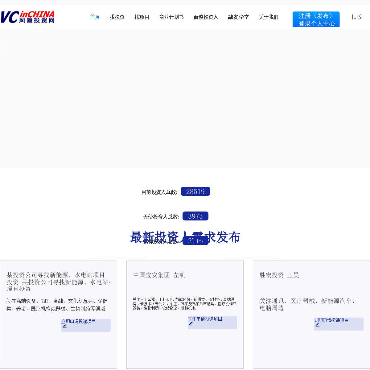 中国风险投资网是国内最早成立的,专业服务于创业项目找投资人,企业融资对接投资机构,为投资公司以及个人投资者提供优质项目进行投资,为创业企业提供关于融资方面的各种专业服务。