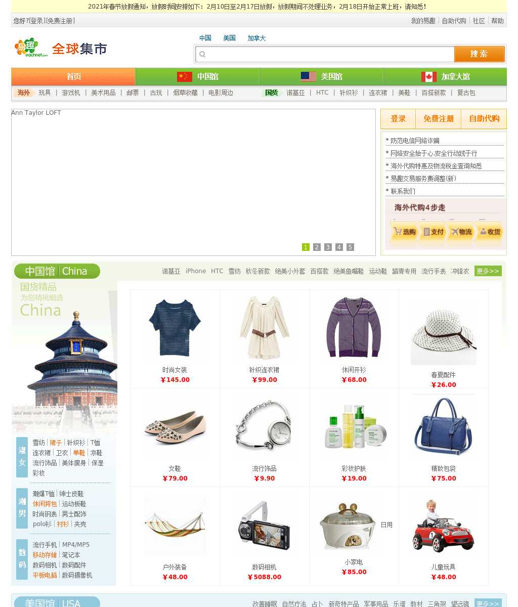 易趣网(eachnet.com)最值得您信赖的海外代购网,提供美国代购、英国代购、EBay代购等众多海外国家的代购服务,汇集来自EBay和海外官网的海量商品,免费代购咨询,专业代购团队,让您海外代购放心有保障。