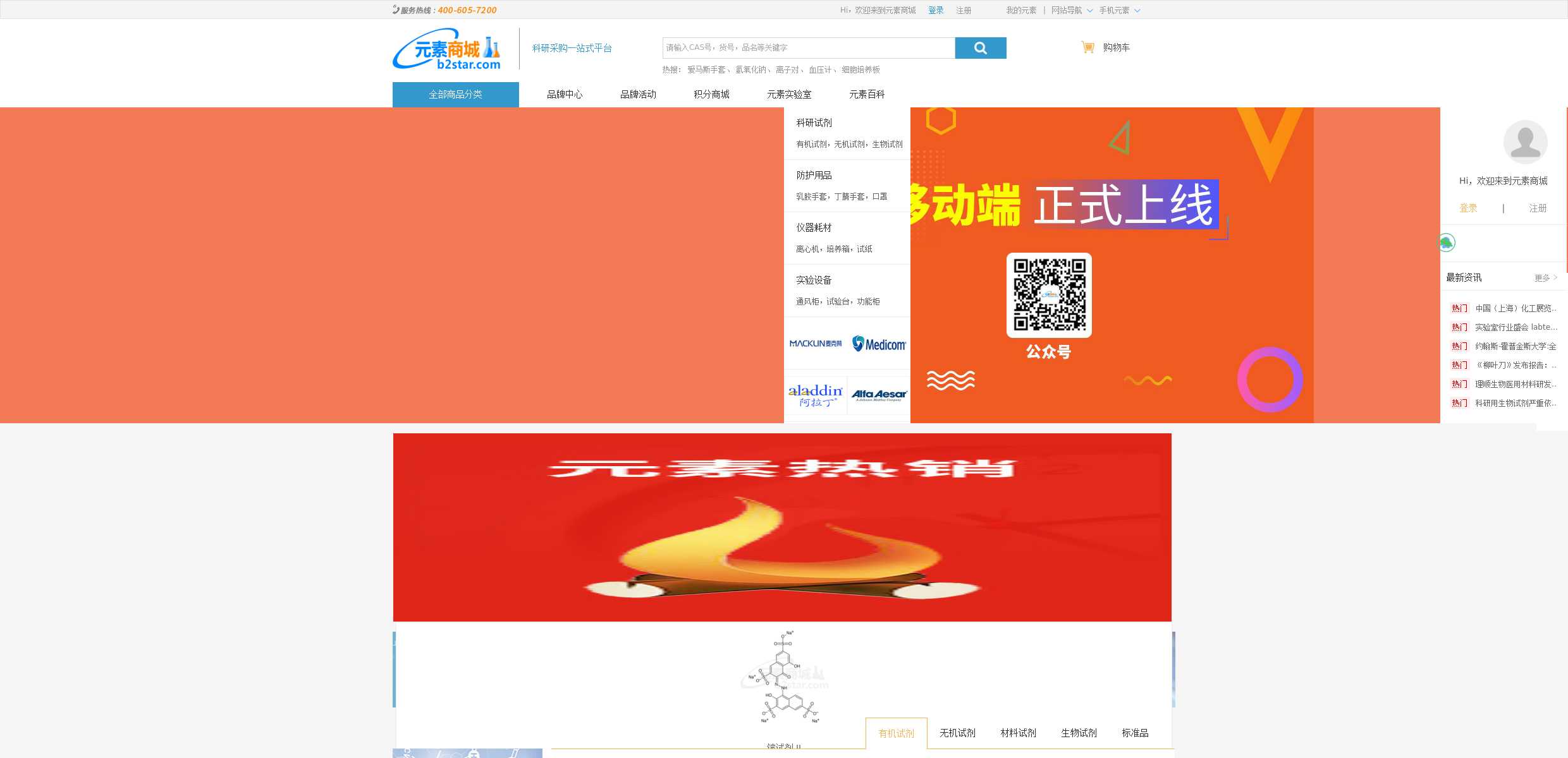 苏州星科元元素商城官网,提供生物试剂,化学试剂,生化试剂,科研试剂,防护用品,实验室耗材等百万种化工产品的查询与购买,汇集数百家知名品牌供应商,是中国专业的一站式化工产品采购网站。