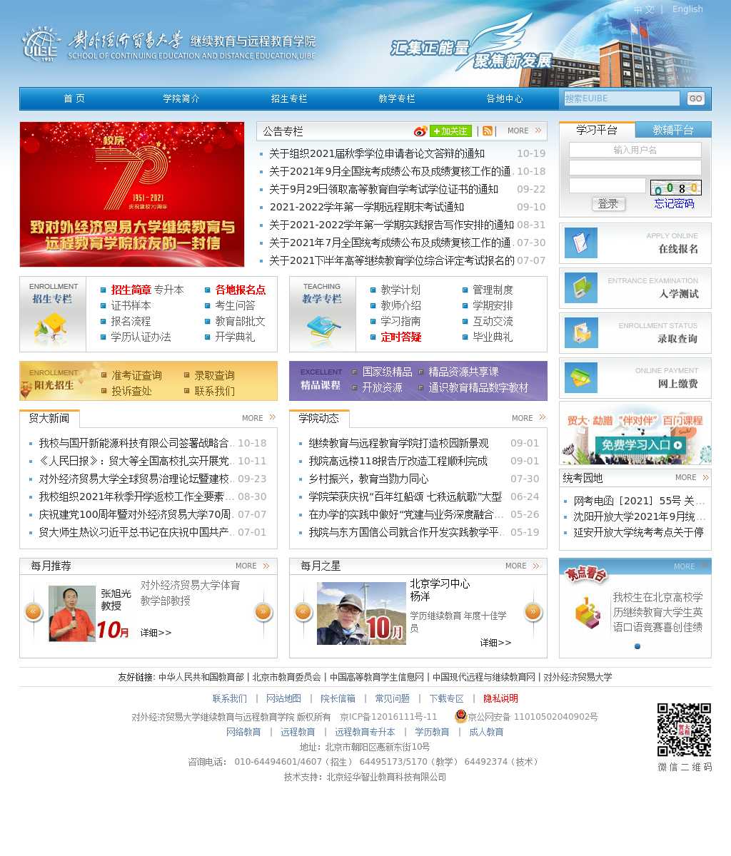 | 对外经济贸易大学 | 事业单位 | 京ICP备12016111号 | 对外经济贸易大学远程教育学院网站 |