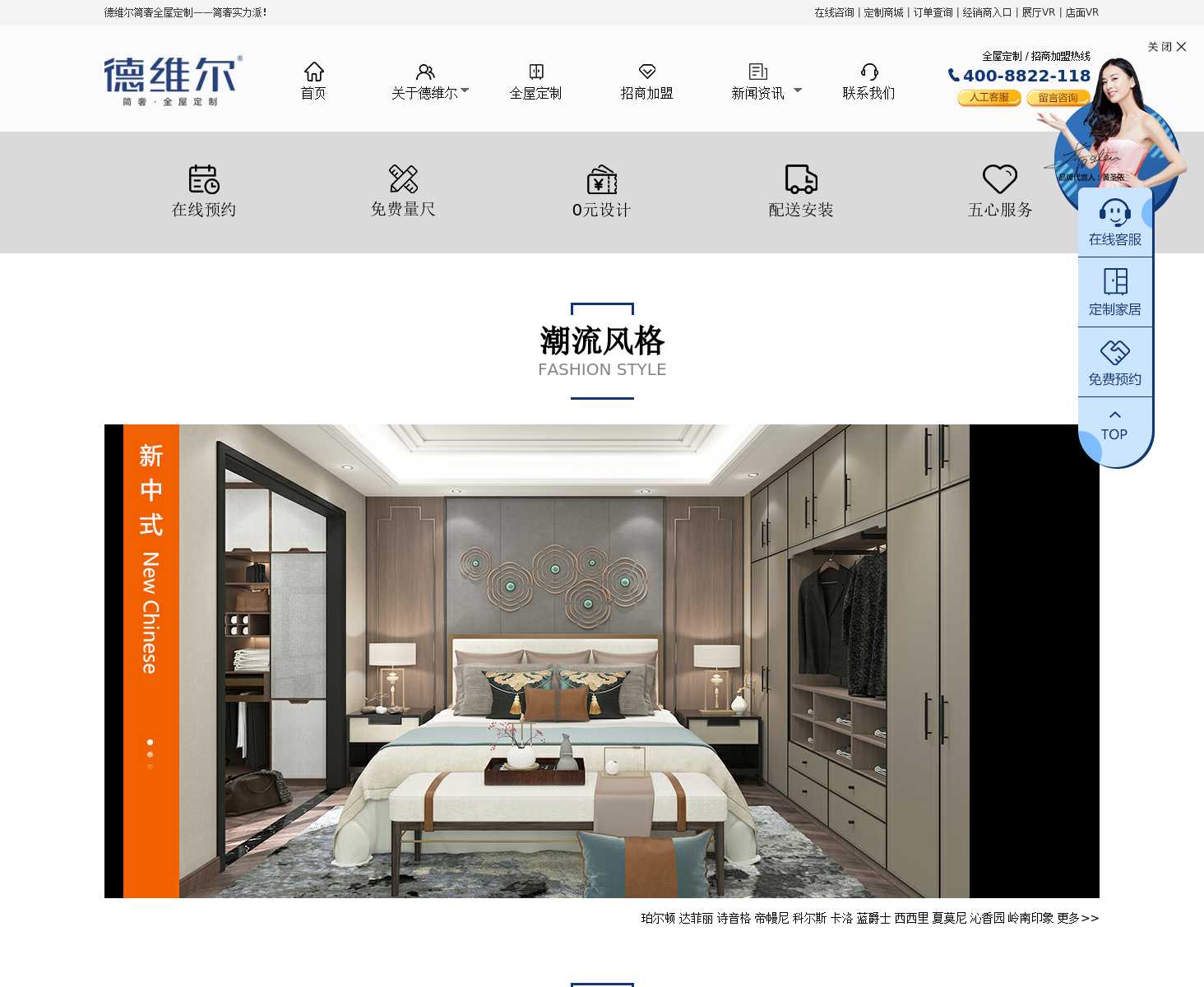德维尔全屋定制品牌,提供一站式家具定制产品研发、生产、物流配送和安装服务,全屋定制加盟、定制家具加盟、定制衣柜代理、整体衣柜招商加盟等招商加盟,全方位扶持加盟商家。