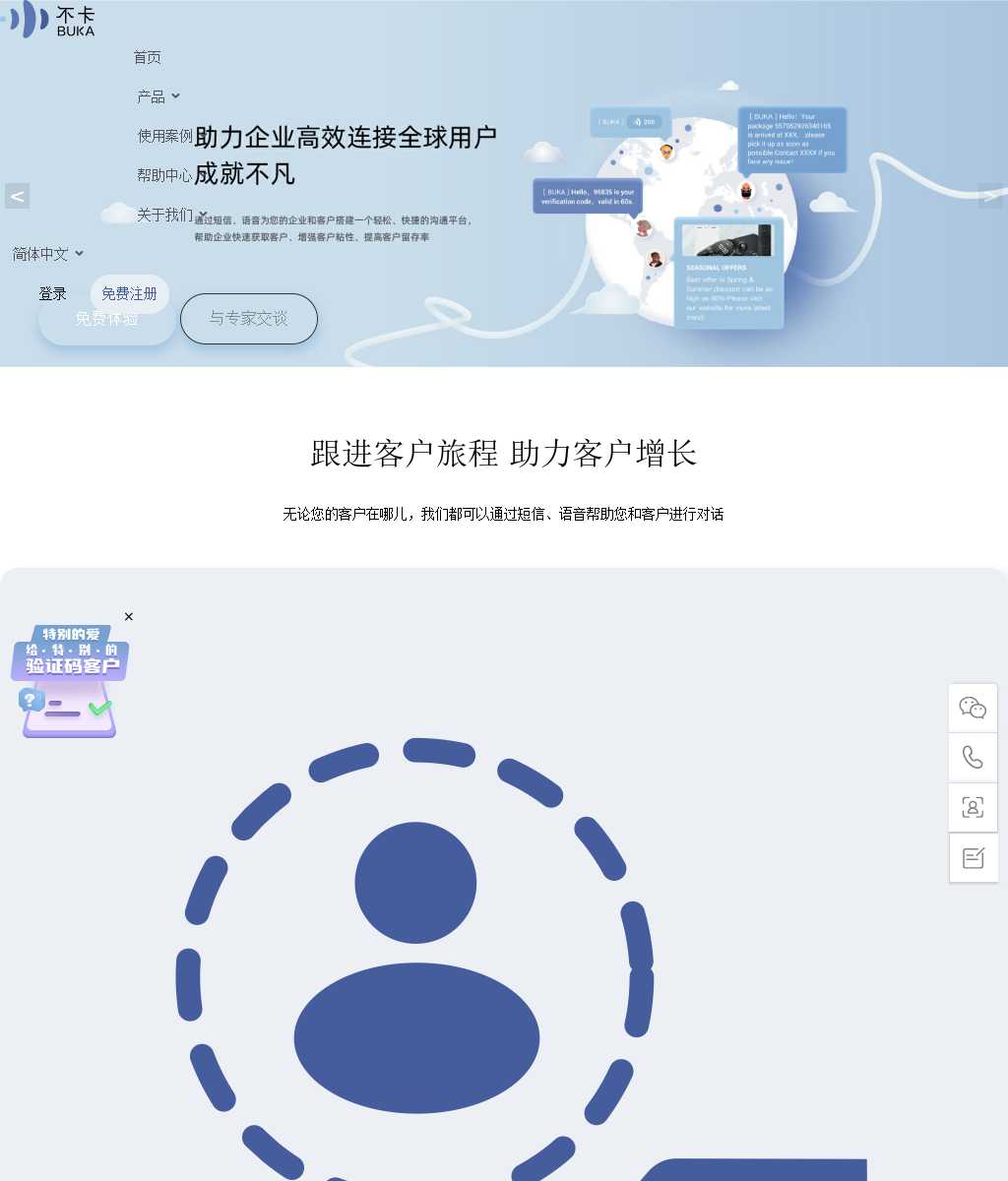 不卡国际云通讯是一家专业的国际短信分发平台,提供验证码短信,通知短信,营销短信、语音短信、语音验证码等服务,范围覆盖全球,99%高到达率,致力于为客户提供优质的国际短信群发接口,国际短信,企业短信接口等服务。
