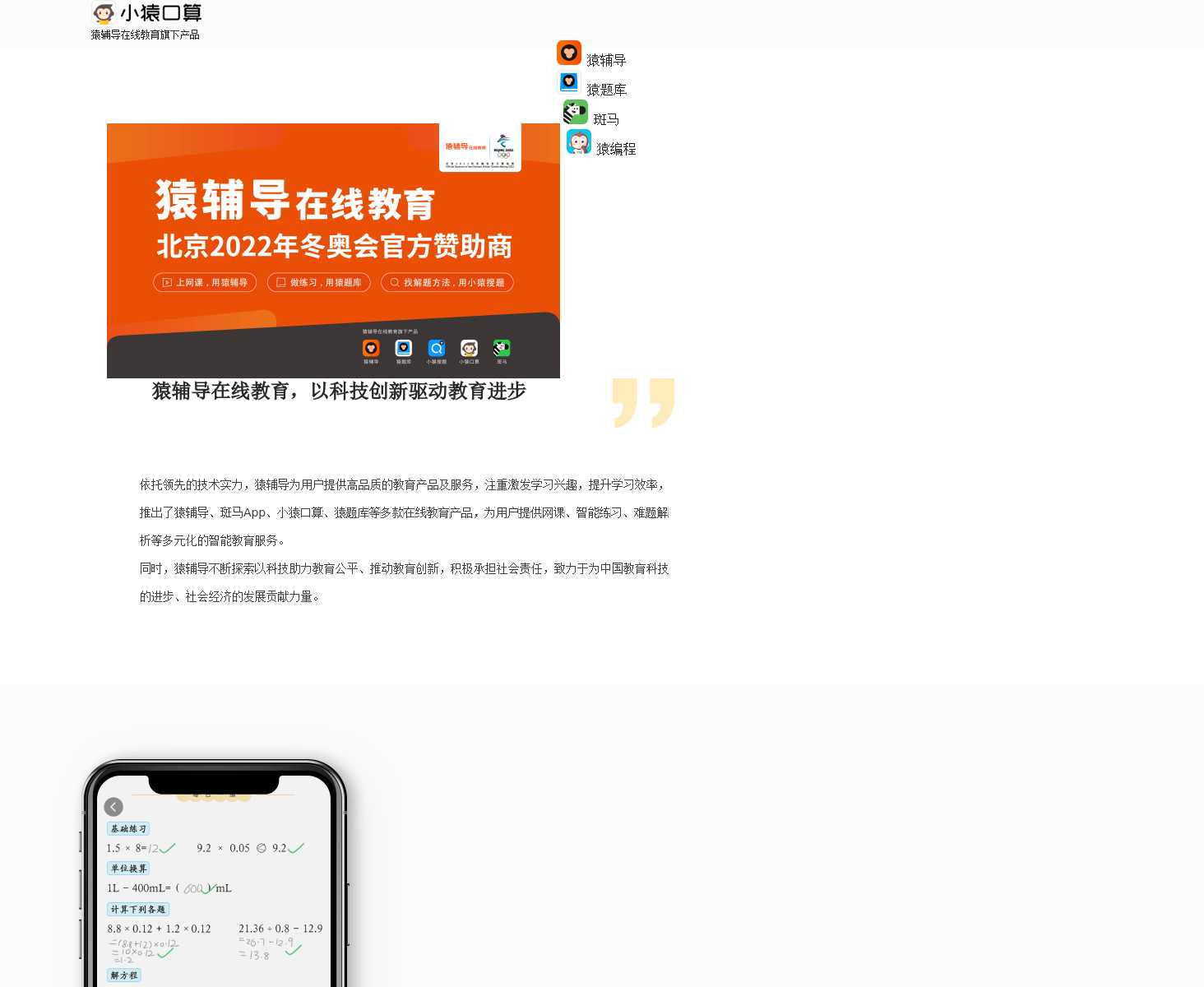 | 北京猿力教育科技有限公司 | 企业 | 京ICP备12032703号 | 小猿口算猿力教育科技 |
