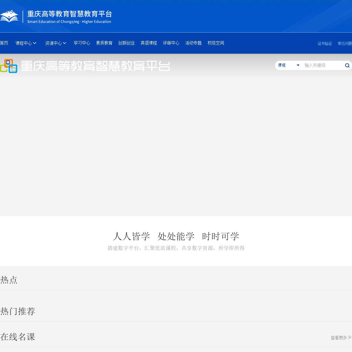 重庆高等教育智慧教育平台(原名“重庆高校在线开放课程平台”)是由重庆市教委主管、市教育技装中心指导、昭信教育建设并运营的官方唯一高等教育课程资源平台,为全国高校师生、社会学习者提供在线学习。