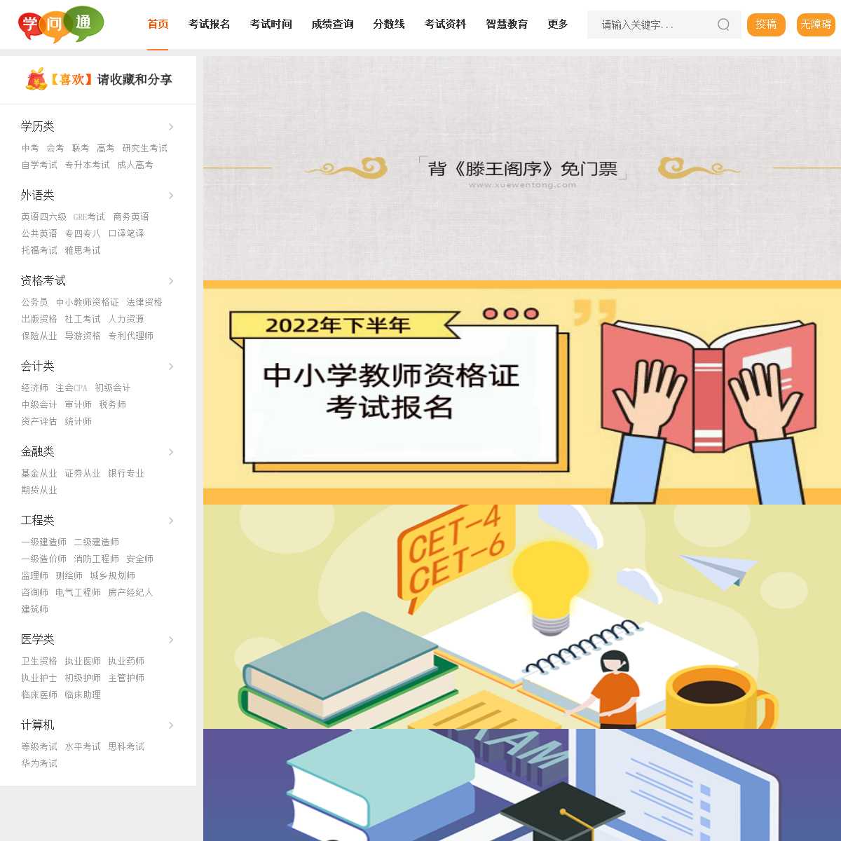 学问通官网提供中考,高考,英语考试,研究生考试,成人自学考试,自学视频,软件自学,公务员考试,考试报名时间,成绩查询,考试时间,资料下载,学以致用,融会贯通-学问通