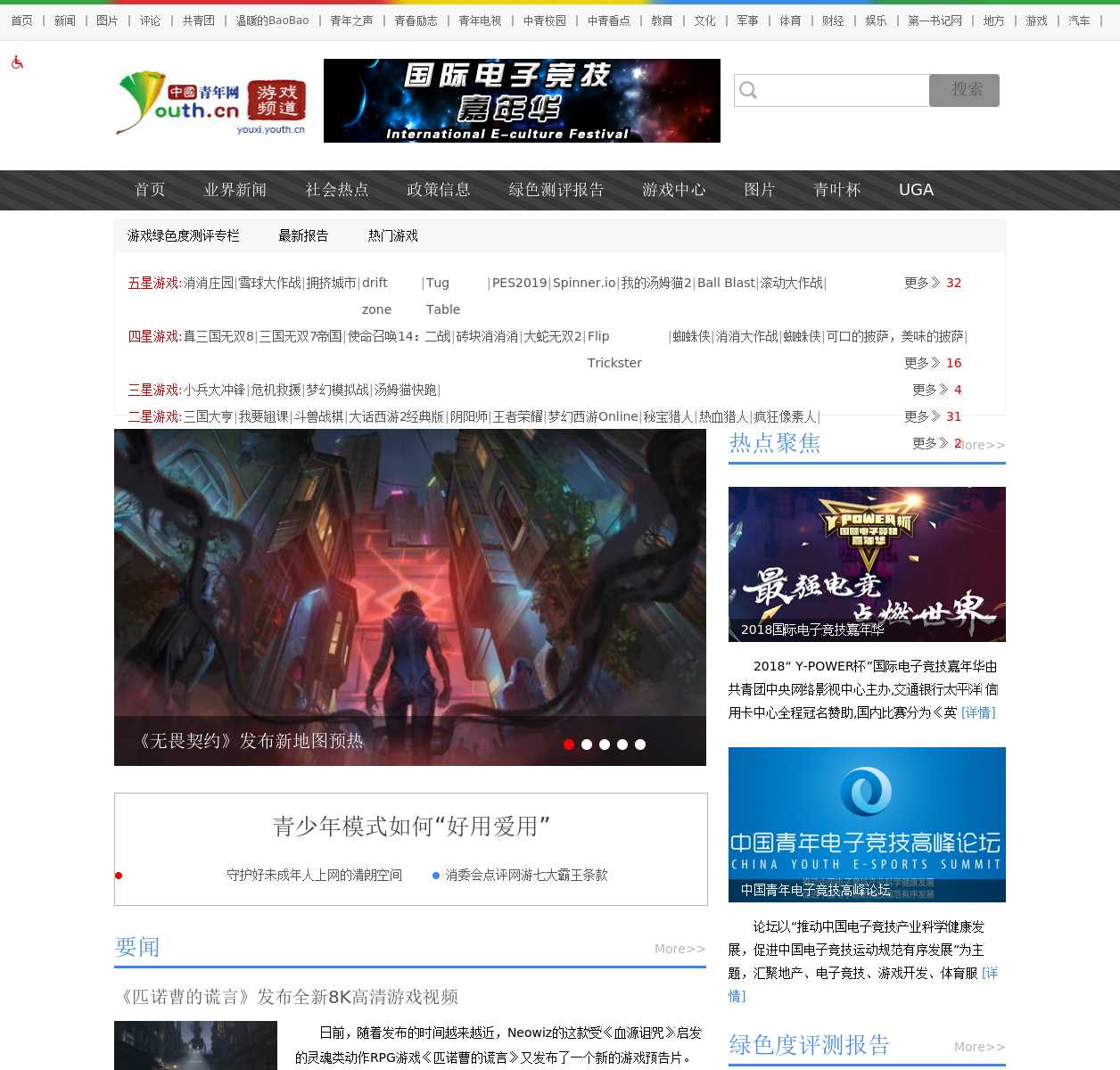 中国青年网游戏频道是国内提供网络游戏不适龄提示的权威网站,将定期发布最新游戏绿色度测评报告和《中国游戏绿色度测评统计报告》,旨在打造权威的青年游戏资讯平台,为家长和社会在引导青少年如何选择游戏方面提供重要参考。