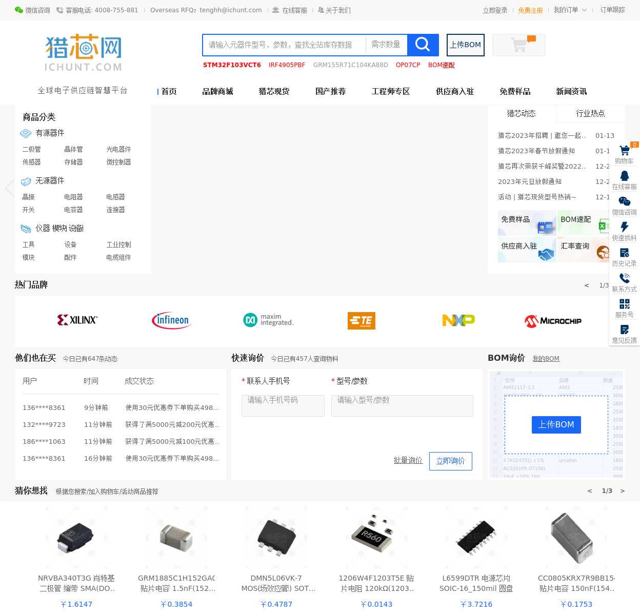猎芯网(www.Ichunt.com)是国内外知名的专业IC芯片、电子元器件采购商城平台,IC交易网站.为客户提供电子元器件现货批发采购,IC采购,进口报关,电子元器件寄售,供应链金融等一站式电子元器件采购服务.