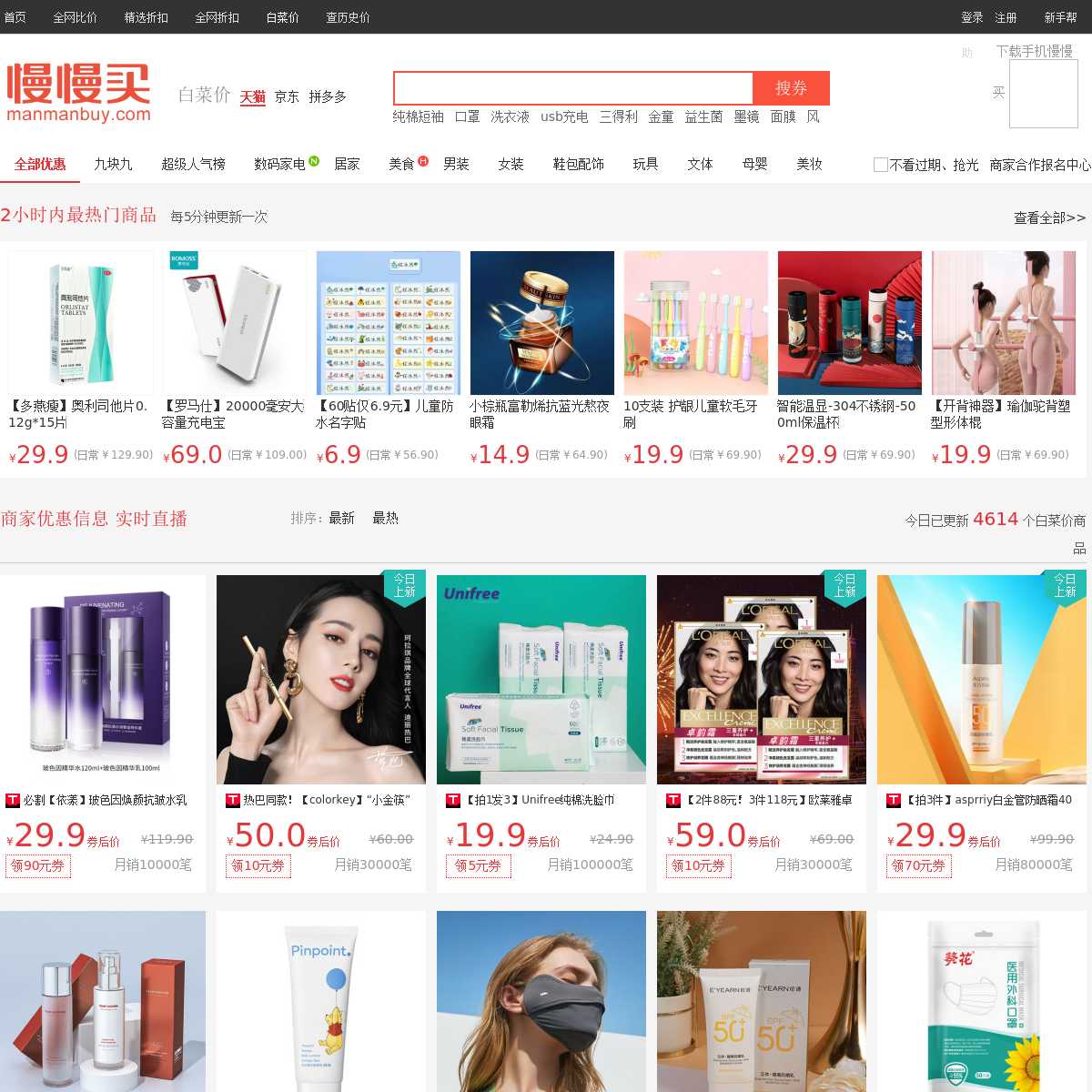 慢慢买白菜价频道汇聚了淘宝平台超值商品,让用户买到高性比的优惠商品。慢慢买为消费者提供最新淘宝优惠券以及实时优惠商品等信息,了解更多最新淘宝优惠券,优选慢慢买比价网。