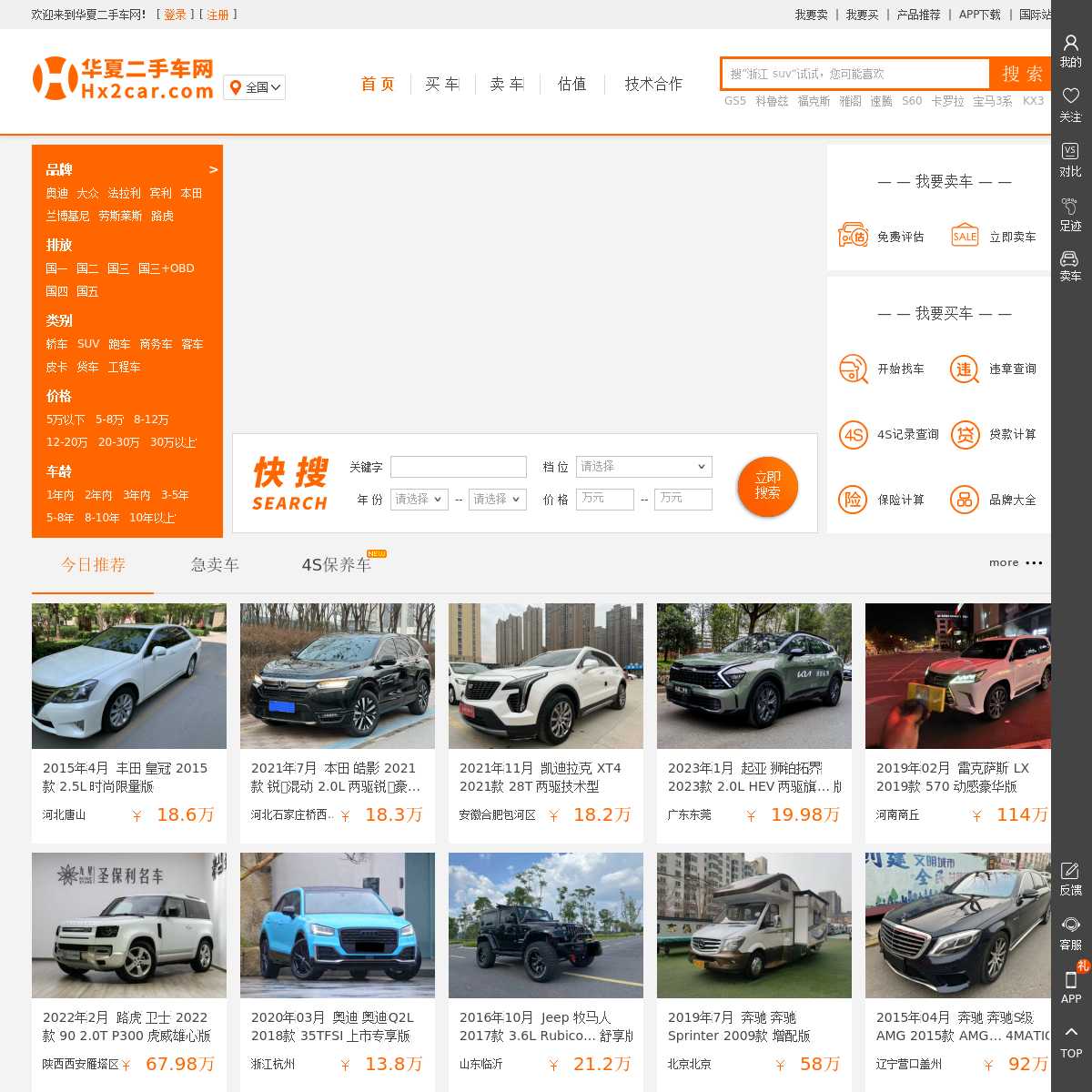 华夏二手车网(www.hx2car.com),让每个人都成为二手车专家,汇集海量二手车供求信息,有高档二手轿车,二手货车,二手SUV及越野车,提供二手车价格查询、新车配置查询、4S店电话查询、二手汽车评估、二手车买卖等服务,是二手车经销商和个人购买二手车、出售二手车的首选网站。