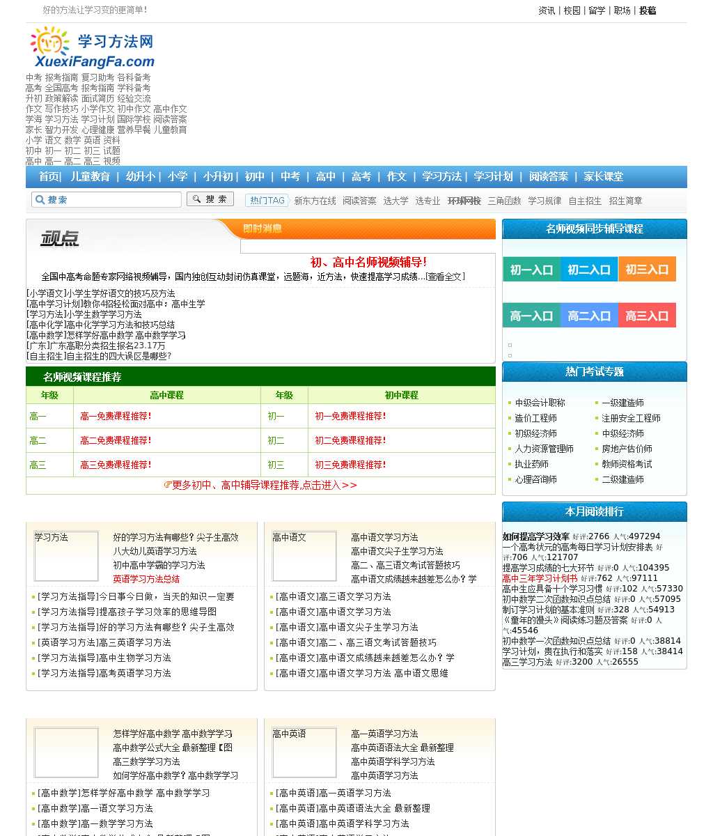 学习方法网是一个专注为中学生提供学习方法辅导的网站,内容包括高中学习方法、初中学习方法、中高考辅导以及各种学习资料下载;好的学习方法会让学习变得更简单!