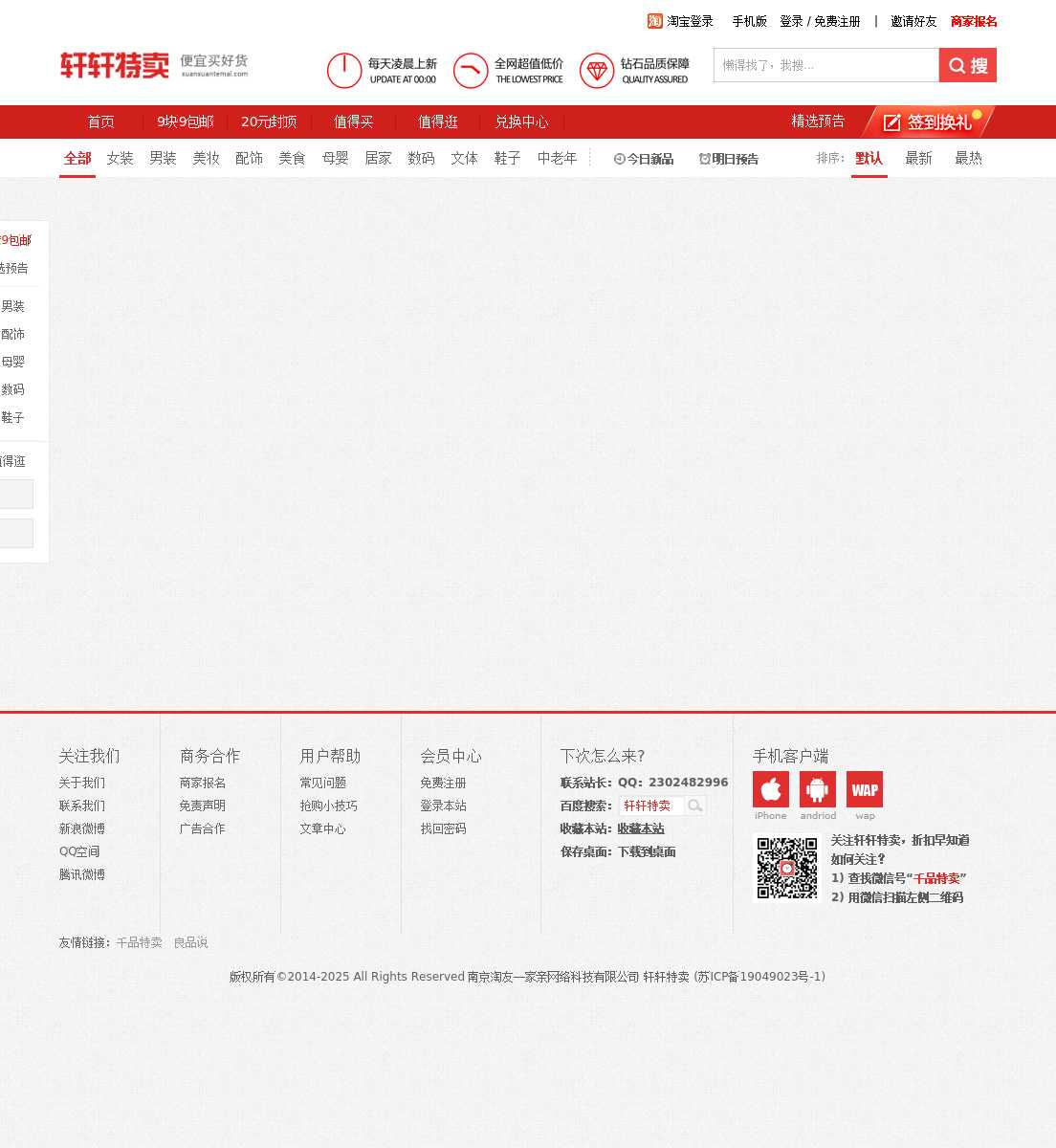 轩轩特卖,帮助用户实现便宜买好货的愿望!每天更新各种超值宝贝,以9.9元包邮为主,更有丰富的栏目如:0元抢单,0元包邮,积分兑换,网友推荐等