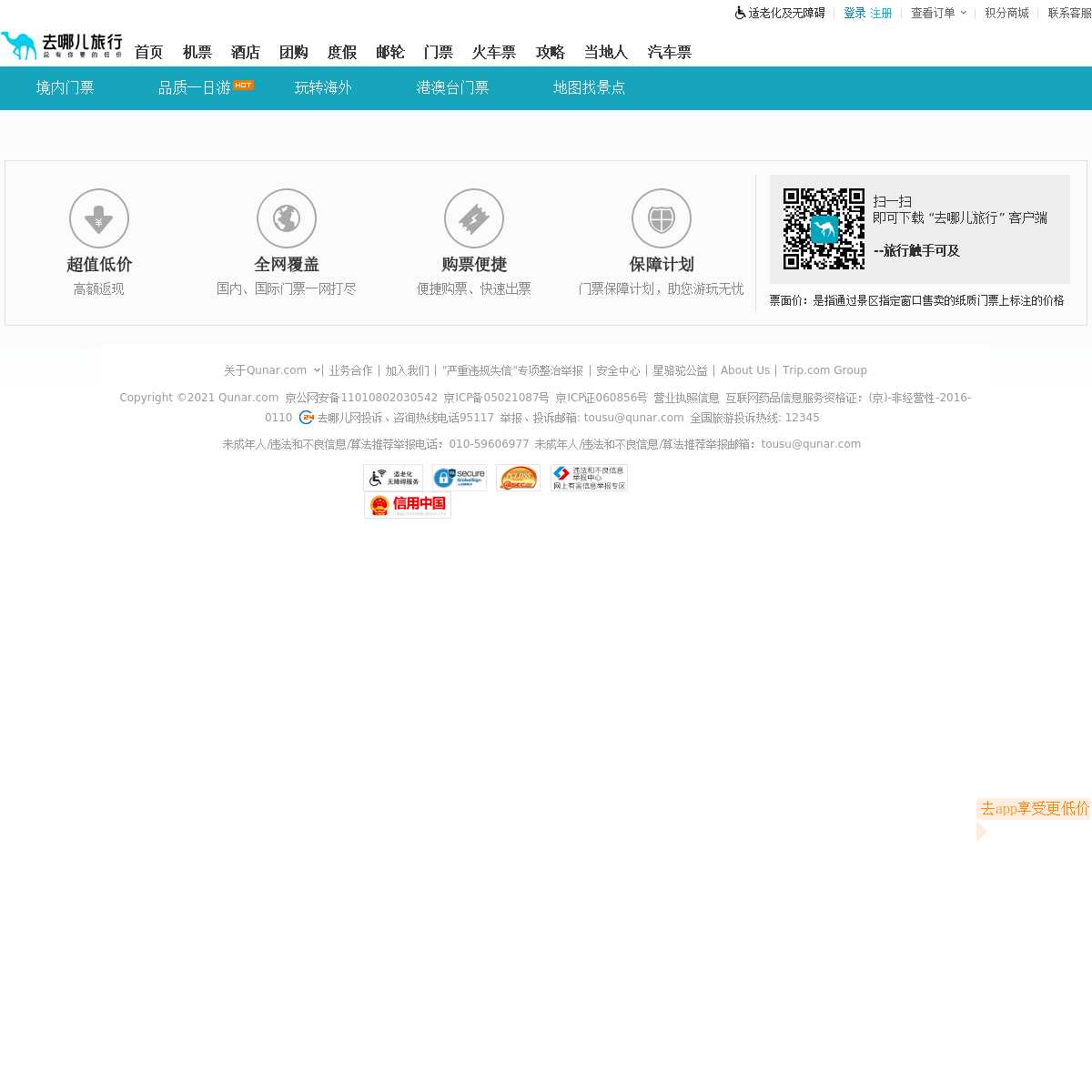 去哪儿网景点门票频道-免费提供全国各地景点的特价门票预订,想及时了解全国旅游景点门票,特价门票预订信息请上去哪儿网景点门票频道(piao.qunar.com)