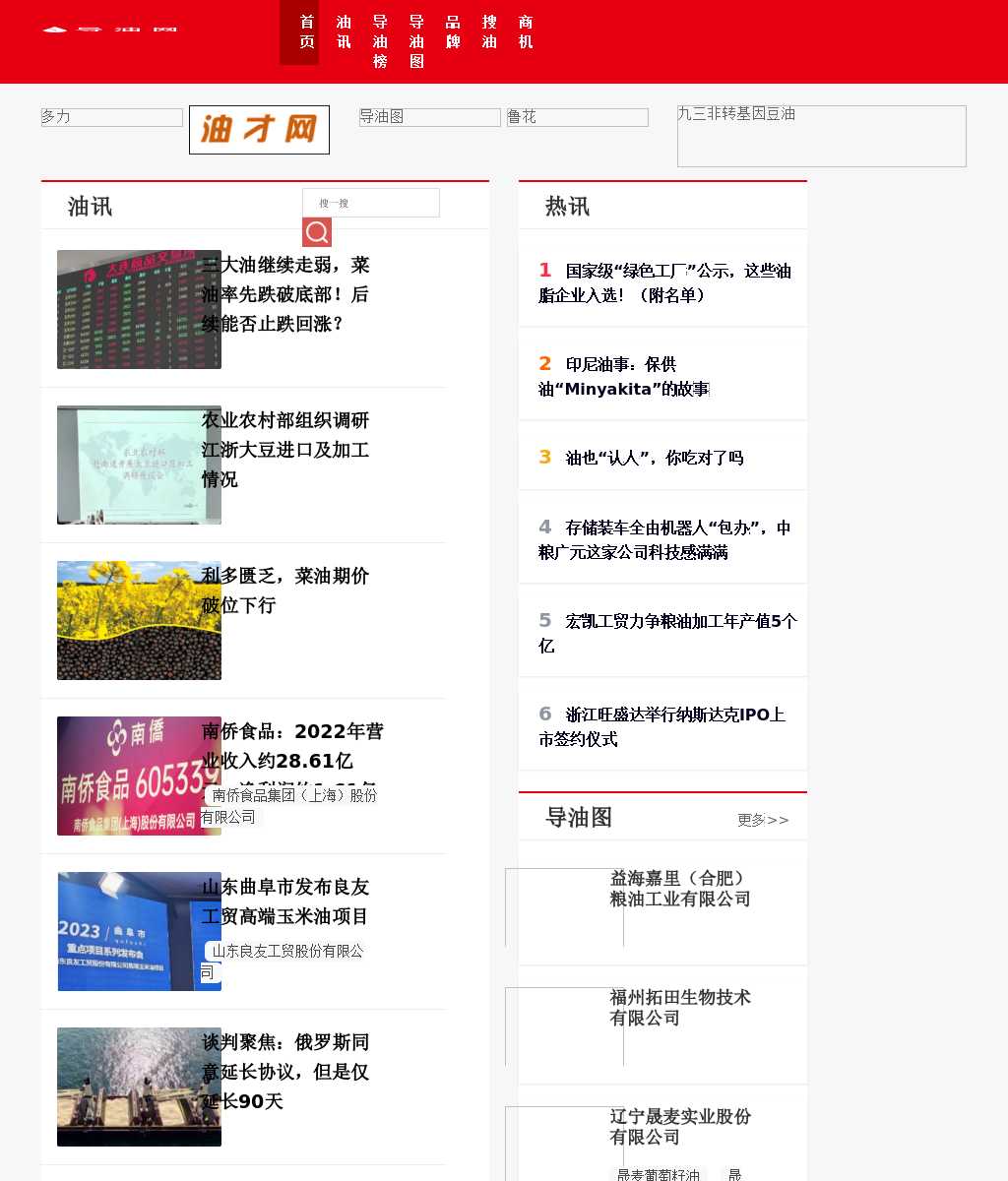 食用油行业门户网站,提供油脂市场资讯,食用油价格行情,食用油十大品牌,食用油企业名录,食用油产品及招商