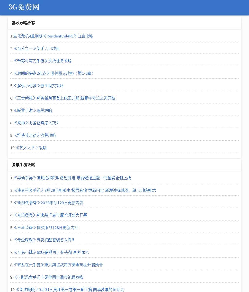 3G免费网是一个提供游戏攻略及问题答案的网站。