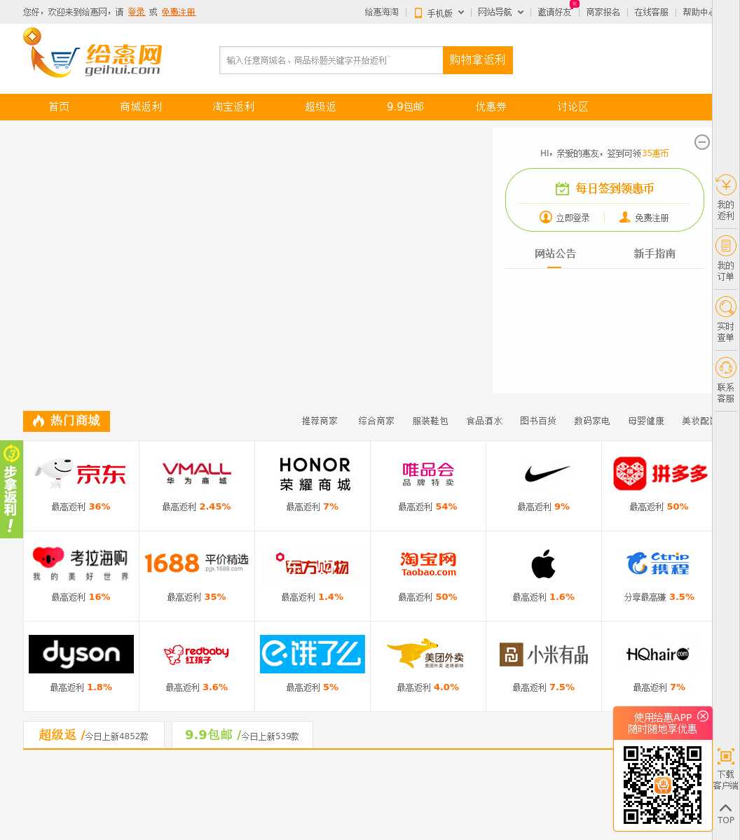 通过给惠网去国内数百个B2C商城、淘宝网购物可返现金2%—50%!网上购物返利首选平台!比价格功能:让您轻松选择最优惠的商城,让您购物更优惠!