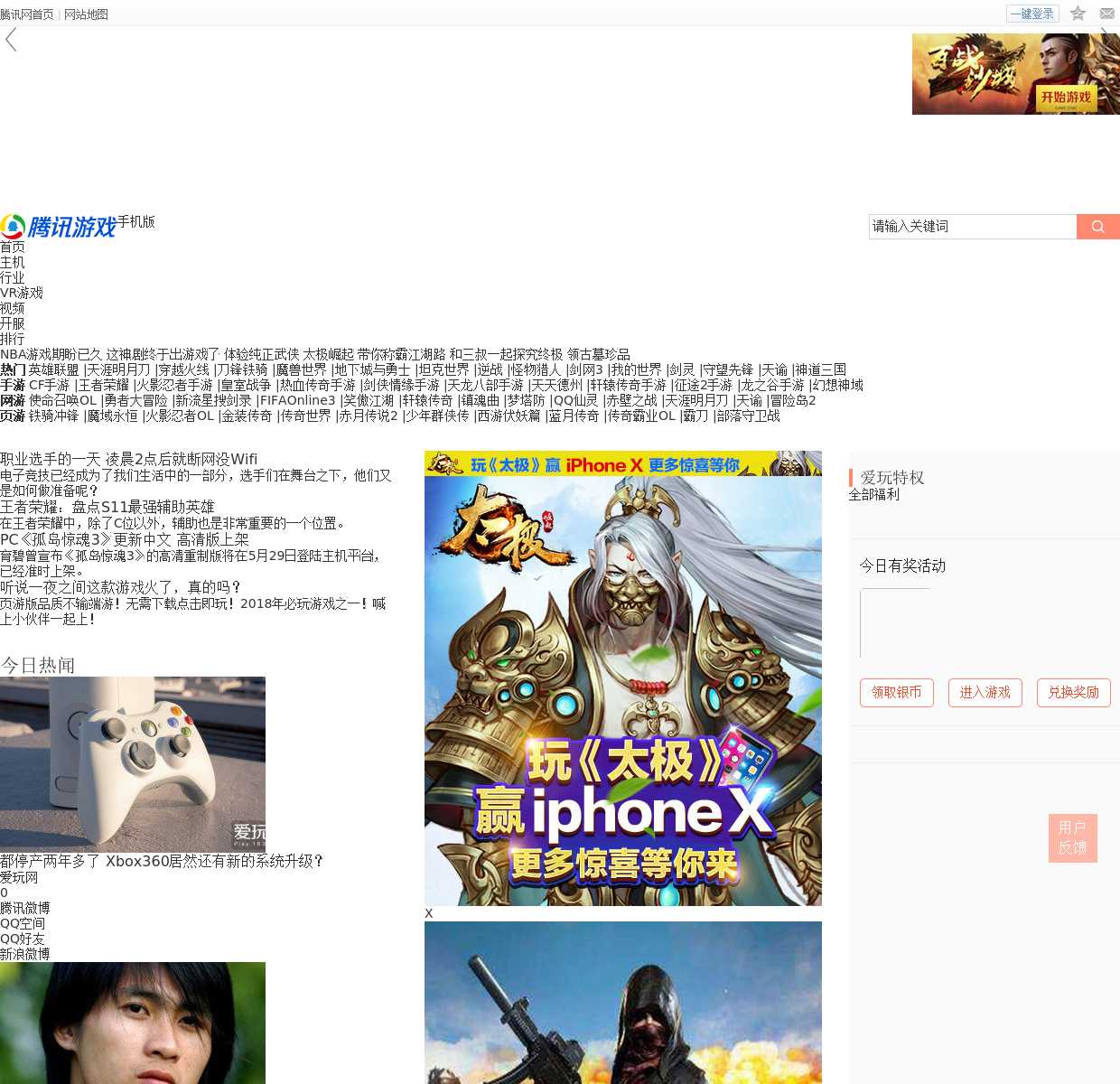 games.qq.com:腾讯游戏频道是综合性的游戏媒体,内容涵盖PC网络游戏,网页游戏,IOS安卓手机游戏等各种平台内容,另外还提供激活码礼包发放,永久免费网游、电视游戏、单机游戏等各类消息,此外,还有论坛,写真,迷你游戏,小游戏,攻略秘籍,有奖活动,八卦趣闻,游戏视频,游戏周边等供玩家选择。