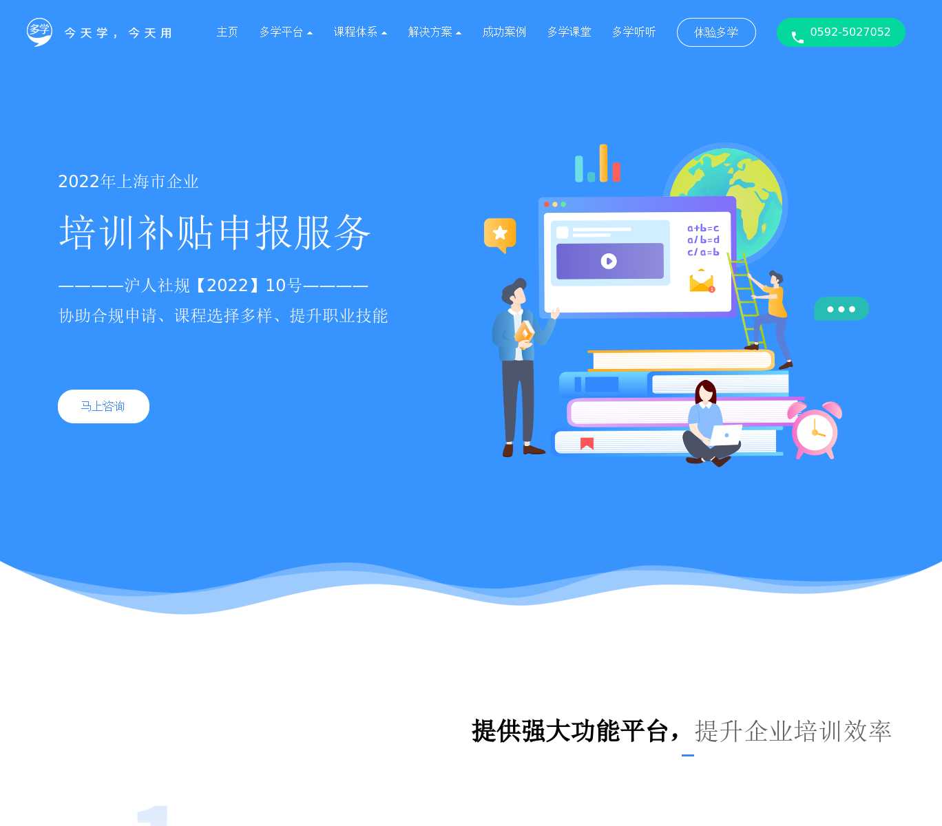 网龙多学专注为企业提供国内领先的在线培训学习综合解决方案,已为近百万企业员工提供优质的e-learning、在线学习平台、在线培训平台、考试系统、培训管理系统、岗位培训课程、微课培训、运营服务,帮助企业建立高效化培训体系,提高培训管理效率。