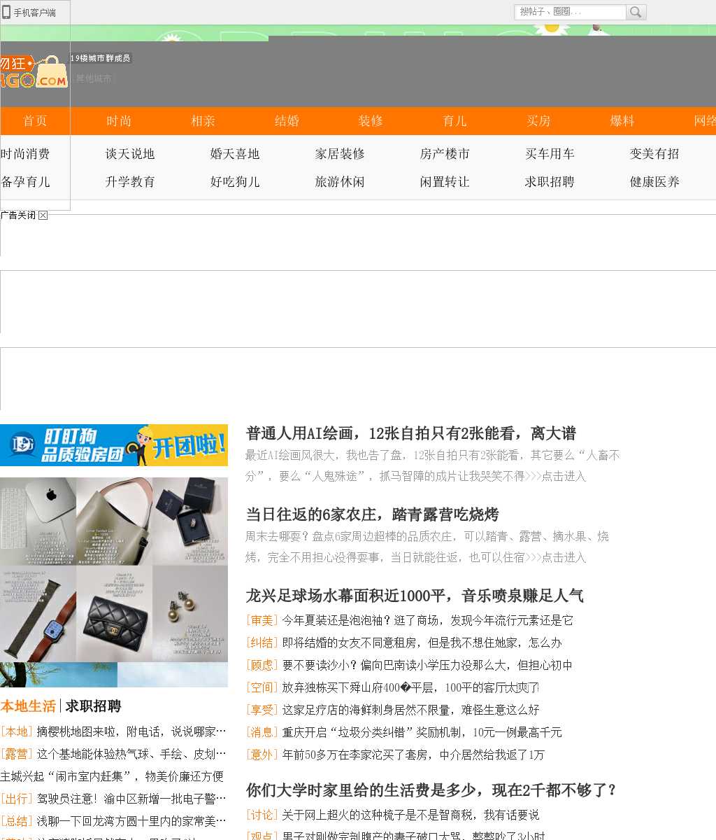 重庆购物狂 重庆购物狂网 重庆论坛(cqmmgo.com,备用域名www.lianglukou.com、www.baibaiyu.com),起源于重庆第一家本土购物、打折交流论坛——重庆购物狂论坛,属于重庆本土化的都市生活消费信息类网站,包含购物、婚庆、美食、休闲、文化、运动、女性消费等一切跟生活消费有关的内容。目前重庆购物狂已经成为重庆最具人气的生活消费社区,为年轻人购物、美食、娱乐等消费行为提供了重要的参考与指导