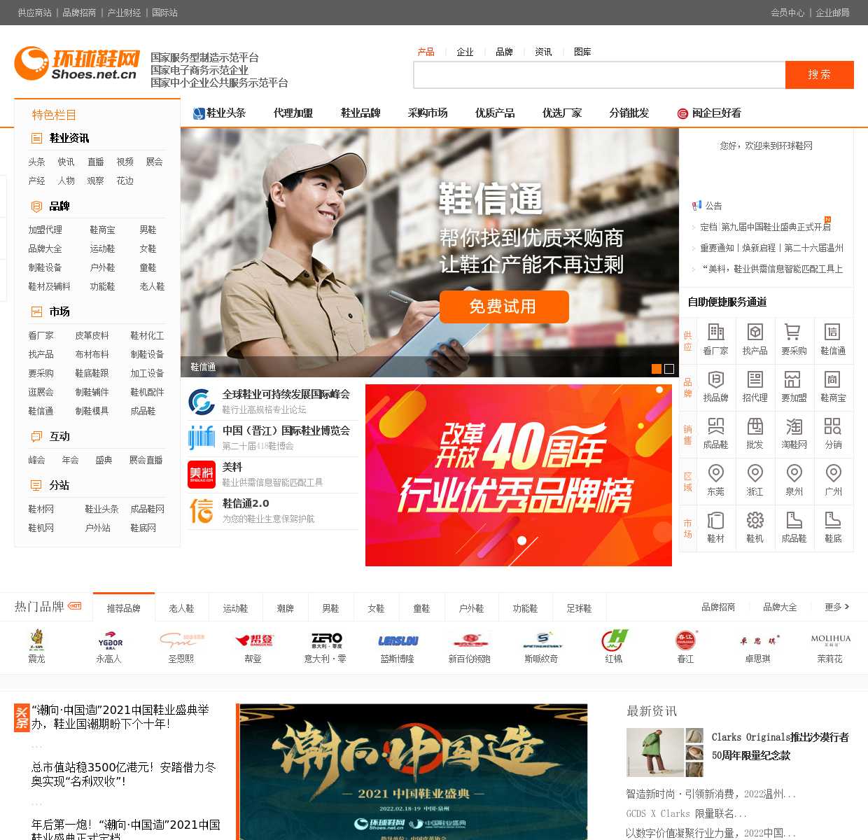 环球鞋网优质B2B鞋子行业电子商务平台,为您提供鞋子品牌加盟,运动鞋,休闲鞋,皮鞋,女鞋,男鞋,童鞋品牌以及鞋材辅料,鞋机模具等产品供应商,同时还提供鞋子行业产经资讯新闻,为生产厂家及贸易商提供全面的鞋产品供应求购信息