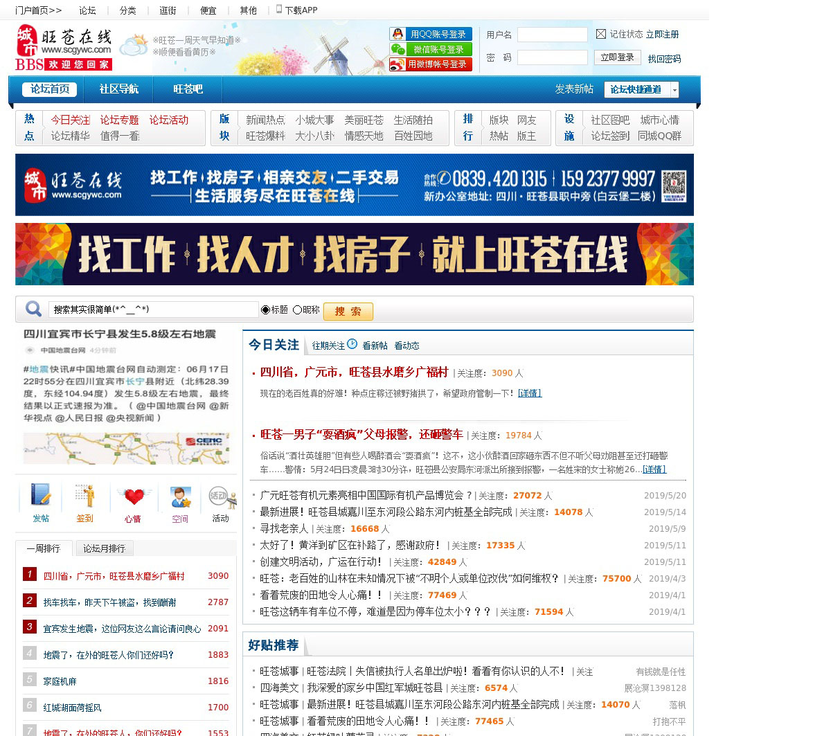 旺苍在线是旺苍在线网络传媒有限公司运营,为您提供城市热点,旺苍论坛,房产频道,招聘求职,网上逛街,黄页大全,网站建设等服务。带您进入精彩的互联网世界,帮您的企业踏上信息高速公路!