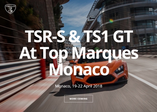 在日内瓦国际车展上公布了其新车型Zenvo TSR-S定位于该公司的TS1 GT轿车与赛道生产的兄弟姐妹TSR之间,将现代化的道路能力与极致的独家性相结合。