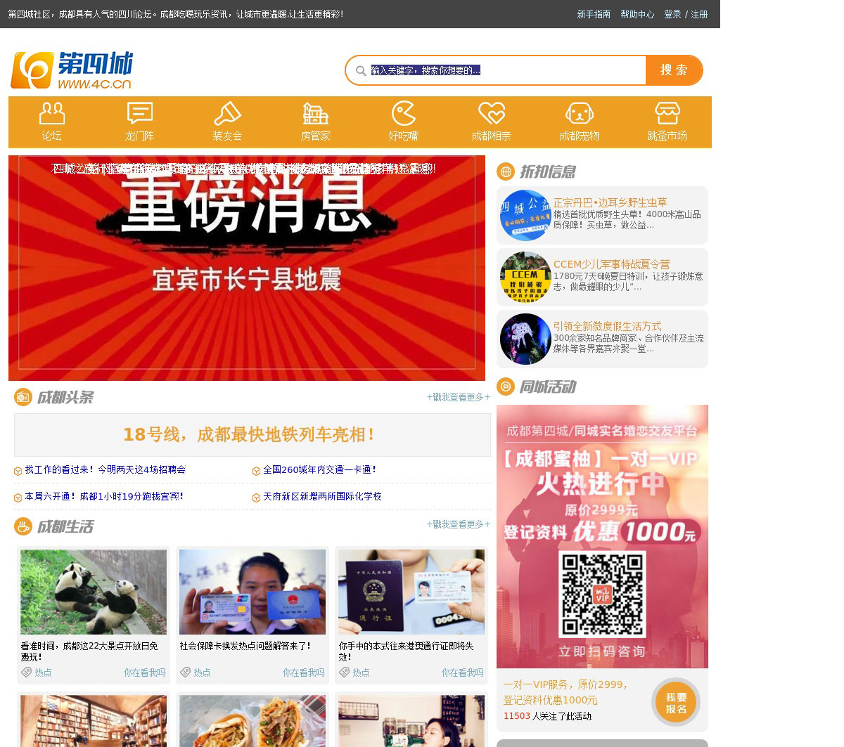 第四城社区,成都具有人气的四川论坛、成都论坛。提供成都吃喝玩乐、生活消费、娱乐休闲资讯服务。让城市更温暖,让生活更精彩!