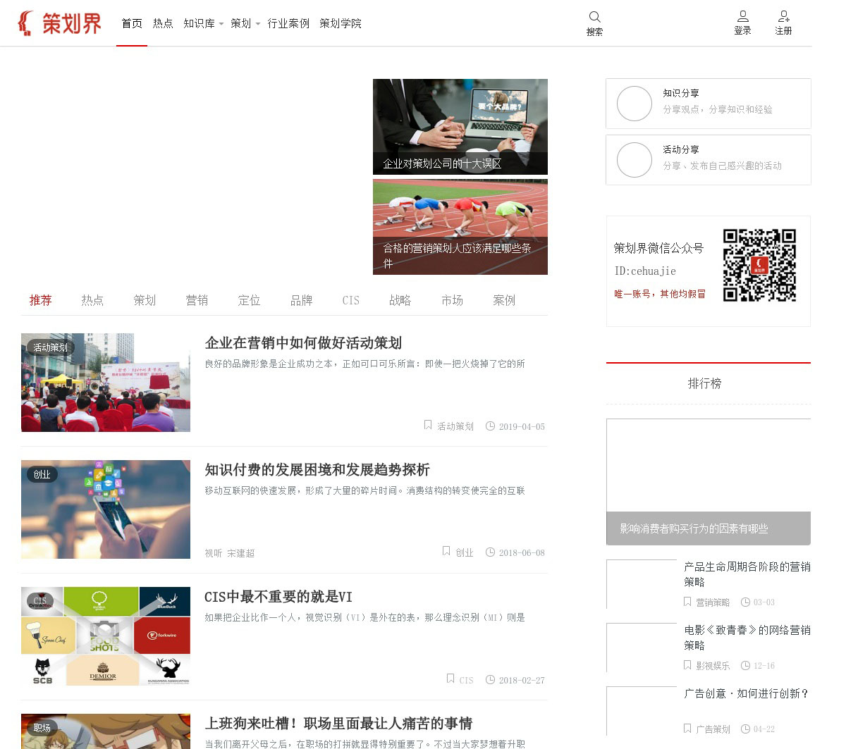 策划界 是营销者的知识库,策划人的工作室。致力于推动品牌经营理念在中国企业中的发展,为策划人职业发展提供最专业的平台,让每一个企业都能随时获得最专业的品牌服务和策划人才。网站内容涵盖策划、营销、品牌、战略、管理、定位、广告、媒体、互联网等各专业领域,并拥有海量策划案例。