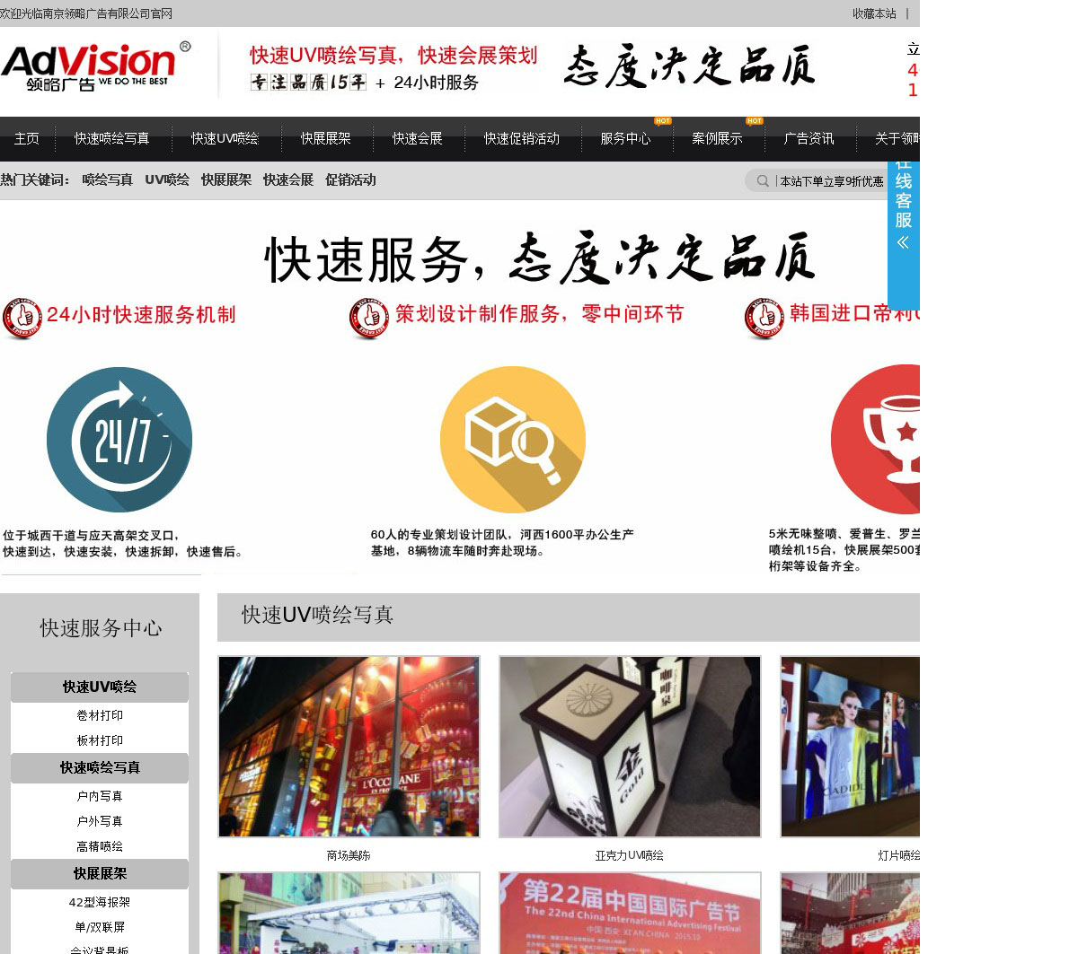 南京广告制作公司找领略,15年广告喷绘经验,在南京广告公司中专业从事喷绘写真.快展展架.会展策划.商场美陈等快速优惠服务,速电4000869970,手机18061440562