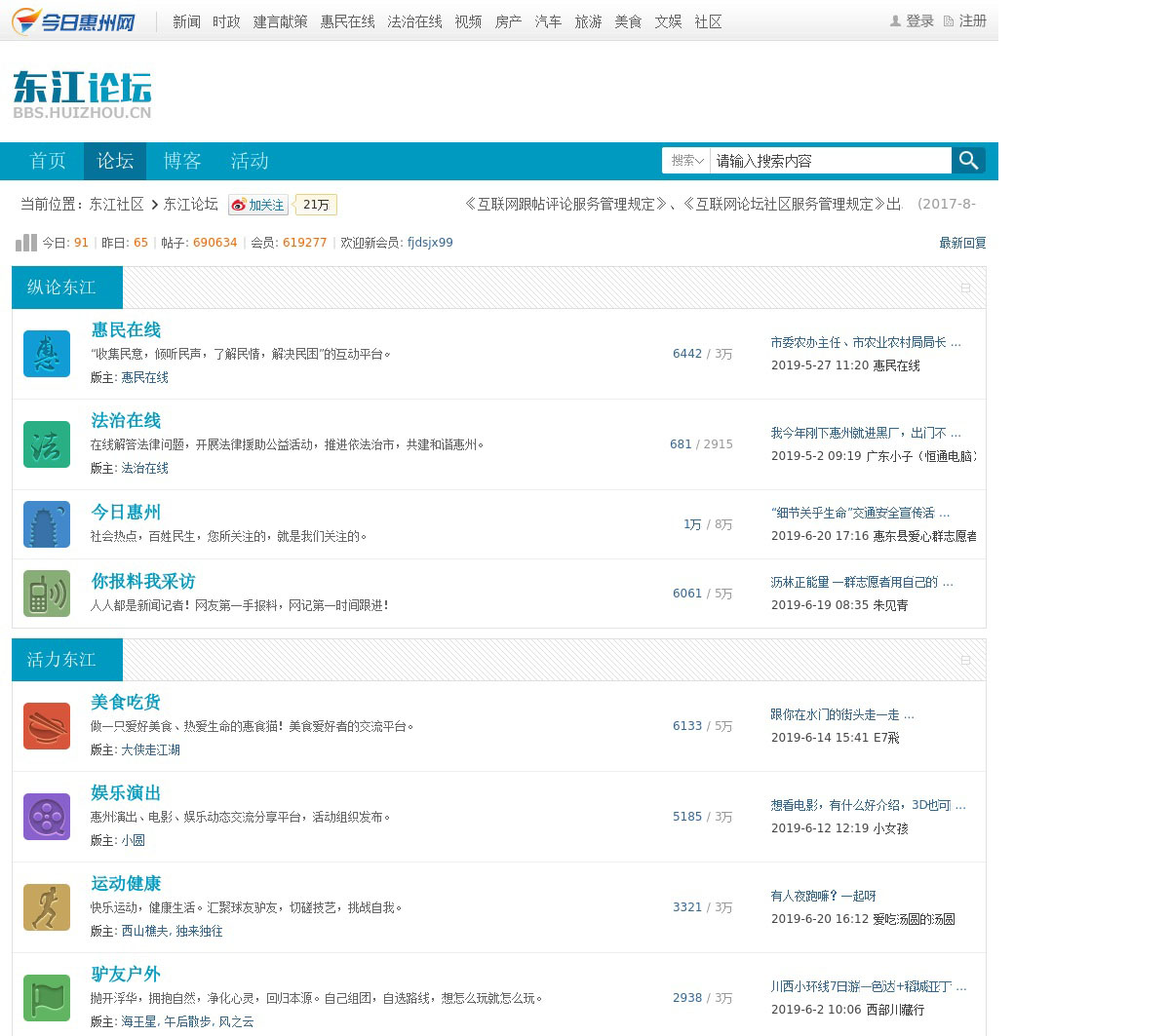 东江社区中心是今日惠州网为网民打造的网上家园,包含了东江论坛、东江博客的全部功能,增加了个人中心,提供微博微信分享供网友体验使用,是惠州人的网上家园和网络名片,让大家随时随地了解惠州新鲜事的好地方。