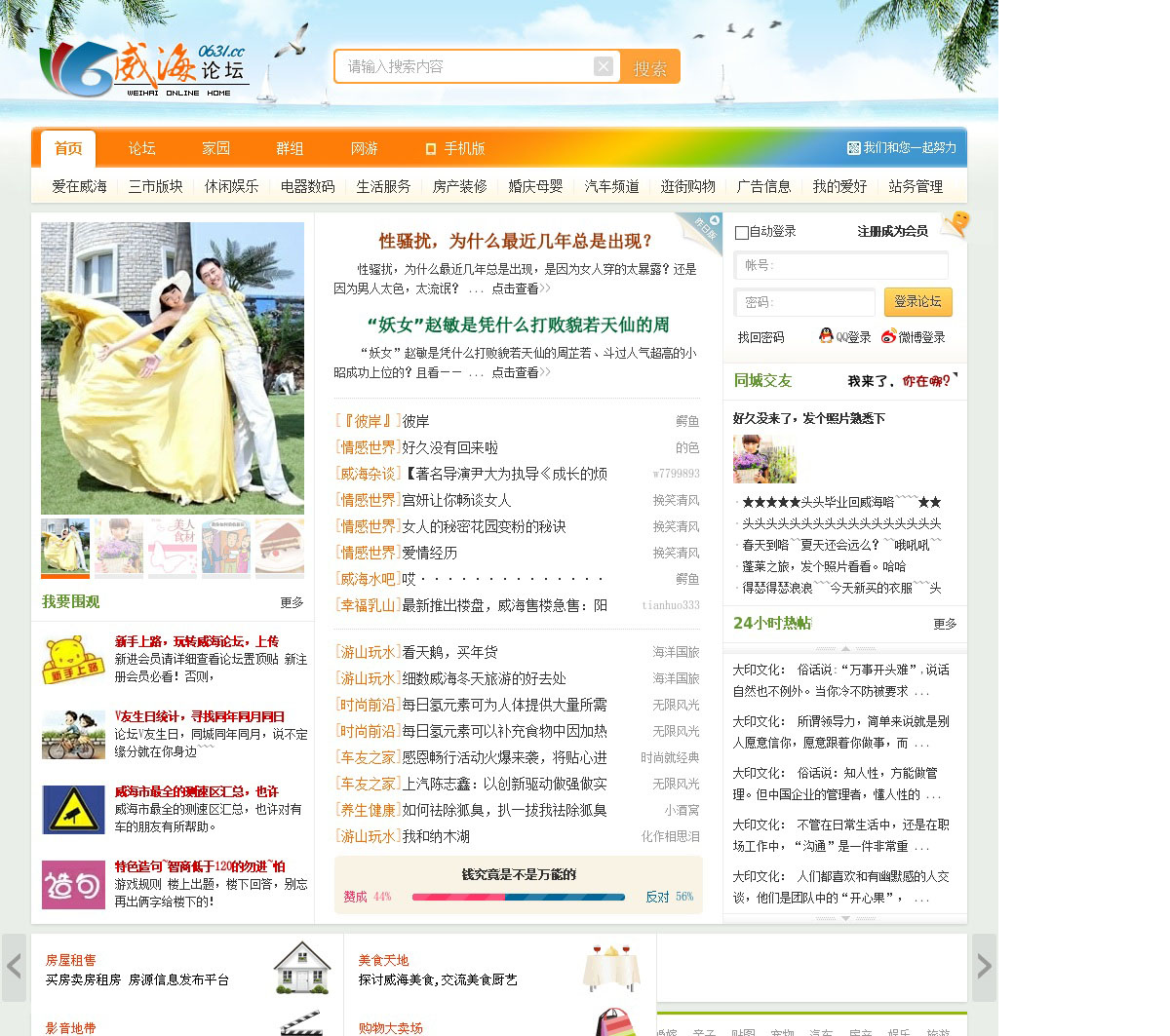 威海论坛|威海社区是威海较大的综合性论坛社区,提供交友、信息发布等生活服务,是威海人的网上家园,威海信息港