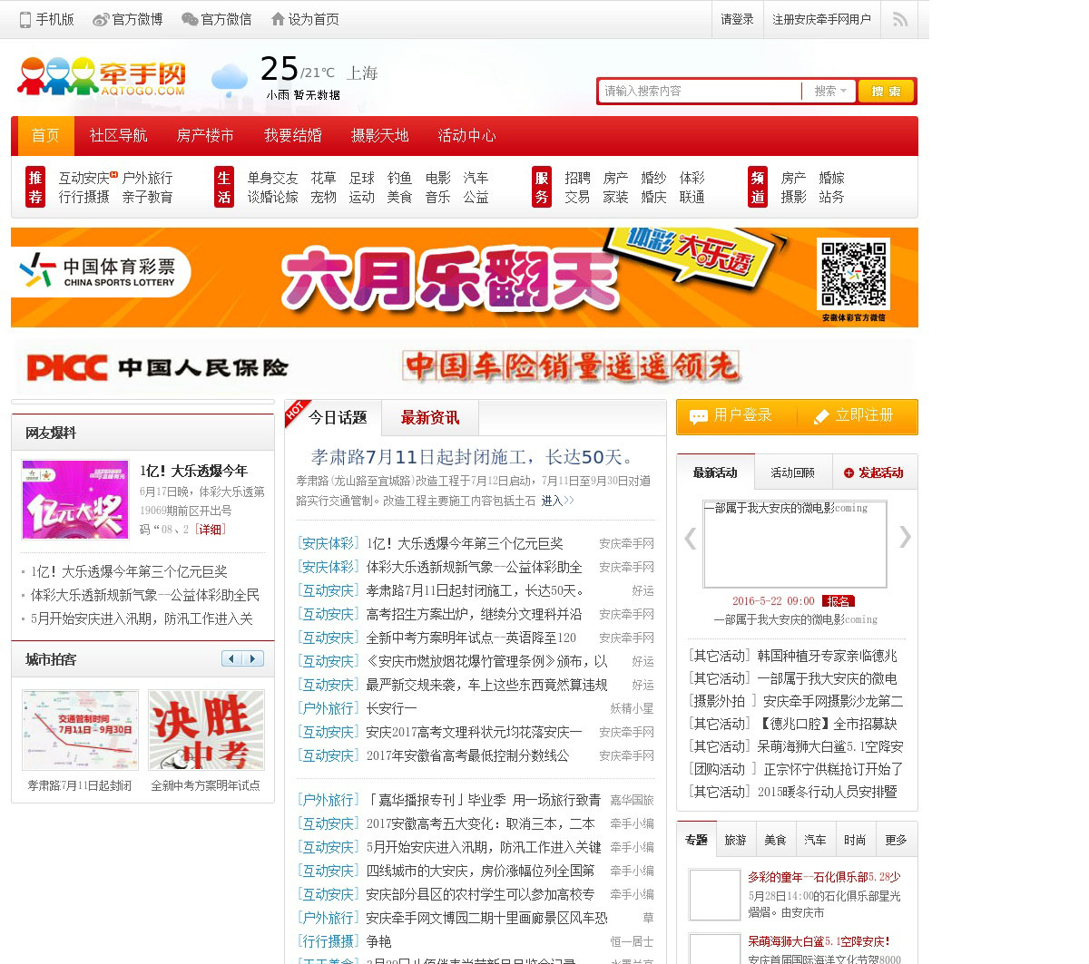 安庆牵手网是安庆人喜爱的网络社区和生活信息库。安庆话题、招聘房产、团购二手、汽车美食、旅游摄影、婚纱婚庆尽在安庆牵手网