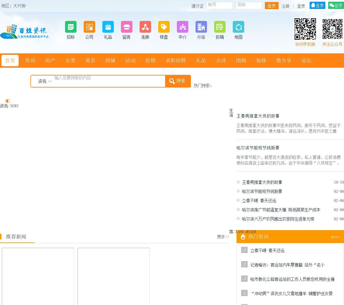 大兴安岭百姓资讯网最好的地方门户以服务本地经济发展,向全国推广为己任,及时向市民传送各地区各类新闻资讯,房产楼盘,分类信息,同城购物,商家黄页,团购活动,优惠促销,求职招聘,打折团购,商家点评