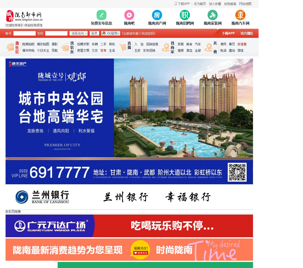 陇南大型综合门户网站,提供陇南房屋出售出租信息,陇南招聘信息,陇南店铺,陇南114,陇南休闲娱乐电话,陇南论坛等综合信息。
