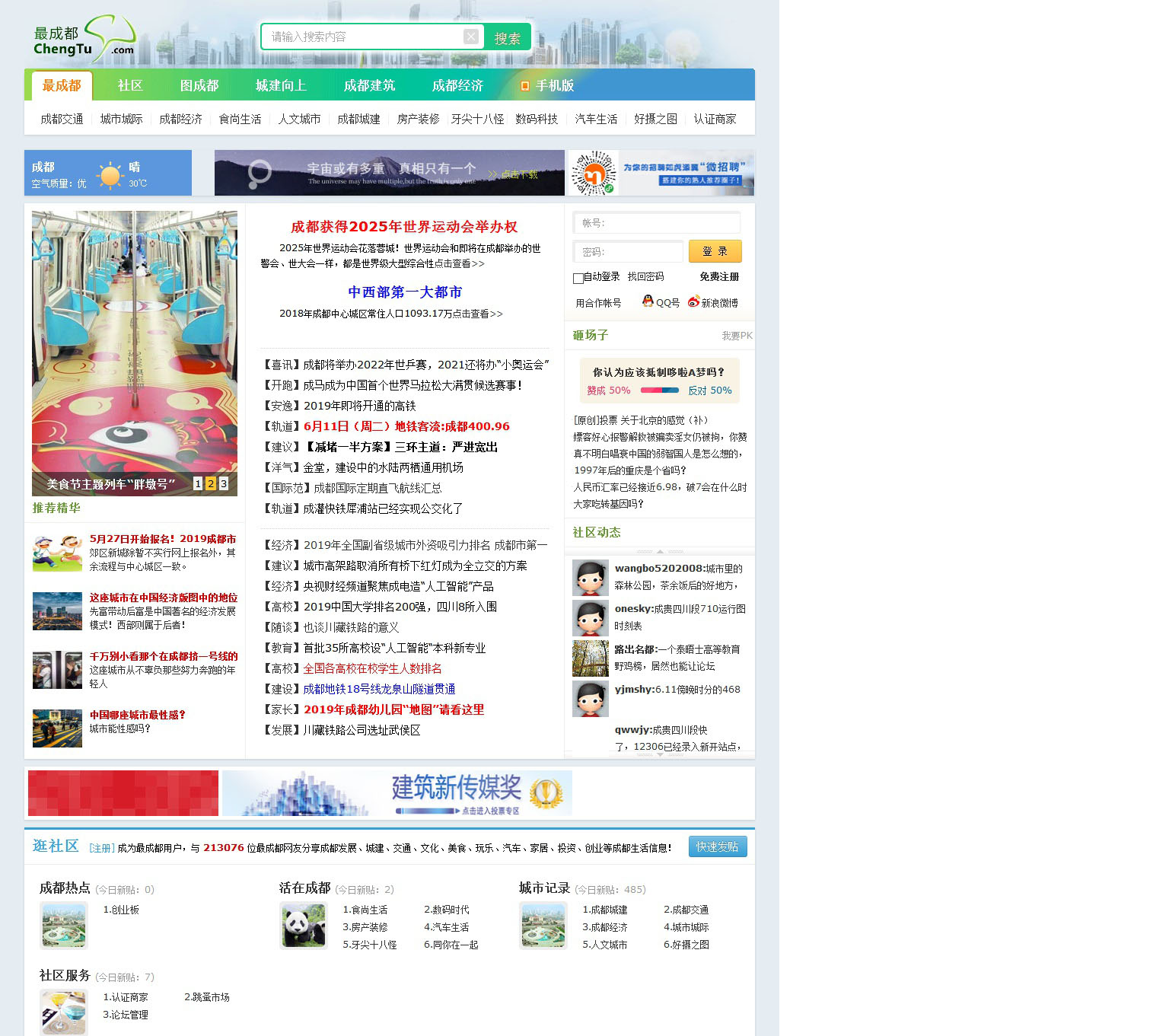 最成都(chengtu.com)是成都本地知名网站,主要关注和讨论成都发展、交通、生活、文化和消费等成都经济发展及成都吃喝玩乐,是一张成都网络名片。最成都论坛,成都向上的力量!