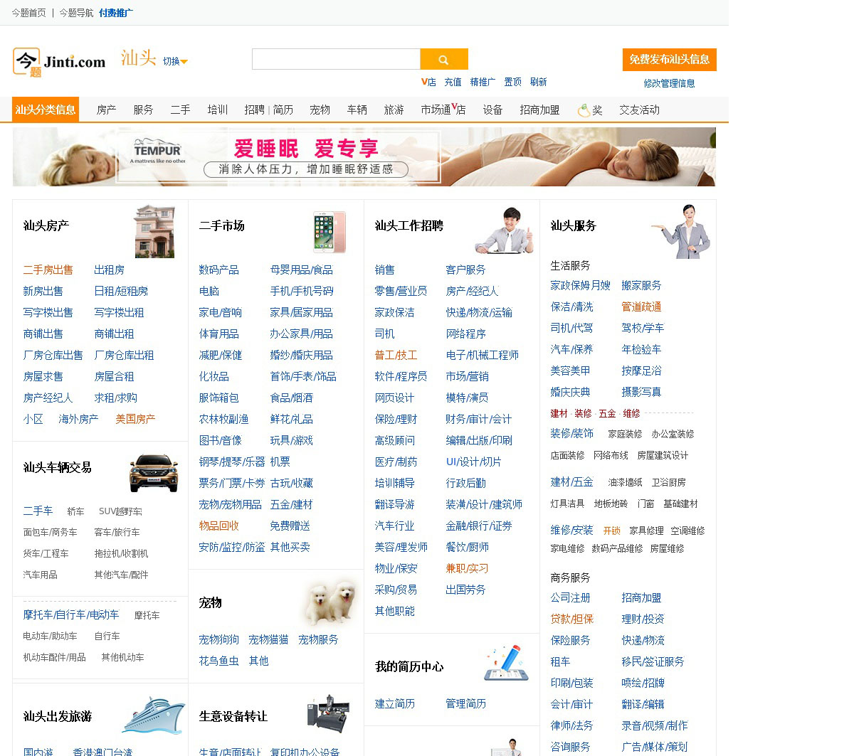 今题汕头分类信息网为您提供大量的汕头生活信息,包括最具权威的专业汕头房产信息,二手房信息,二手车及二手物品交易及交友征婚信息, 您可在汕头分类信息网上免费发布分类信息