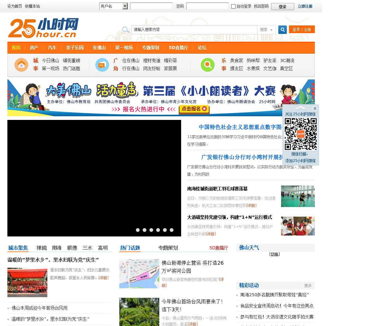 25小时网是佛山极具影响力的门户网站,佛山25小时网站内设佛山城事、房产、汽车、亲子、教育、交友、征婚、招聘、旅游、美食等同城话题,是佛山最热门的论坛社区网站之一。