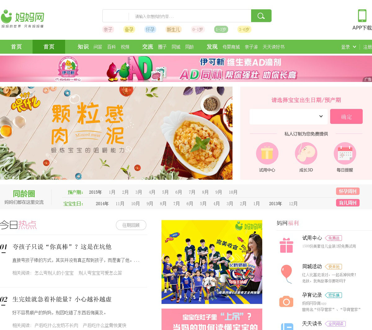 妈妈网:为准备怀孕、怀孕期、分娩、坐月子、0-6岁的婴儿幼等等父母提供育儿知识与问答互动;妈妈网,腾讯投资的唯一亲子网站,是妈妈信赖的备孕、怀孕、育儿心得集中地,旗下拥有广州妈妈网、北京妈妈网、天津妈妈网、重庆妈妈网等三十二个独立站点,是汇聚海量泛母婴用户的综合网络集群