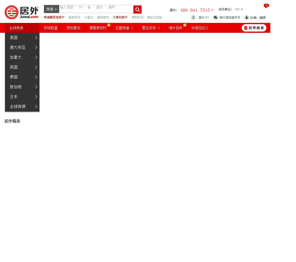 居外海外房产网以一站式平台为全球华人提供多个国家逾万条环球房源,是最专业的海外房地产信息网,协助您做出更英明投资决策.居外网—开启您的海外置业之旅.