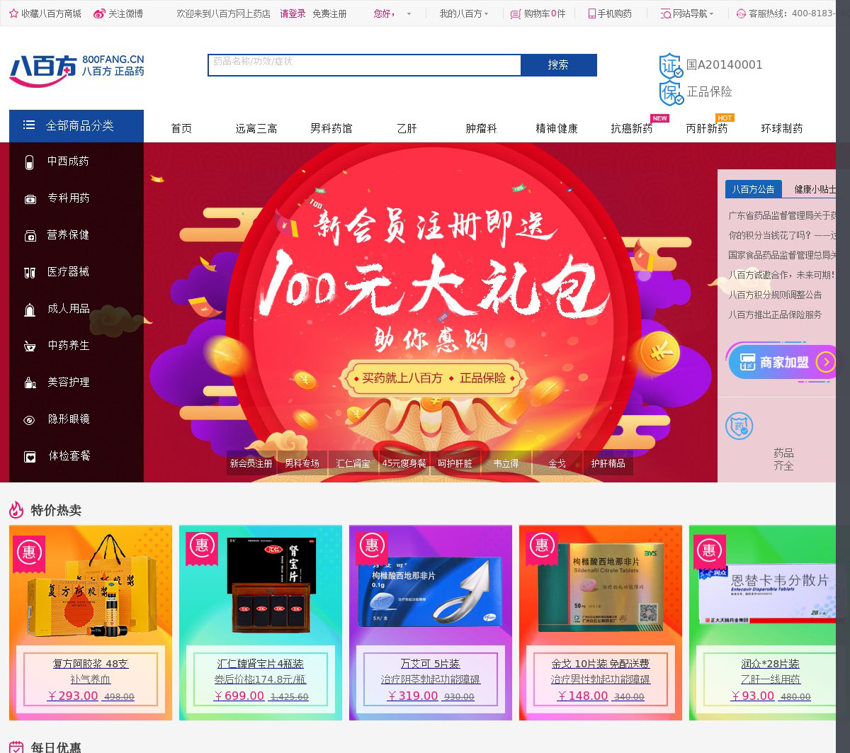 网上药店哪个好?八百方网上药店-全国网上买药的正规网站,提供覆盖中西药品、营养保健、医疗器械、药妆护理、医疗辅料等品类范围的销售服务,是您网上购药买药的正规合法药房网,并有执业药师提供免费用药指导。