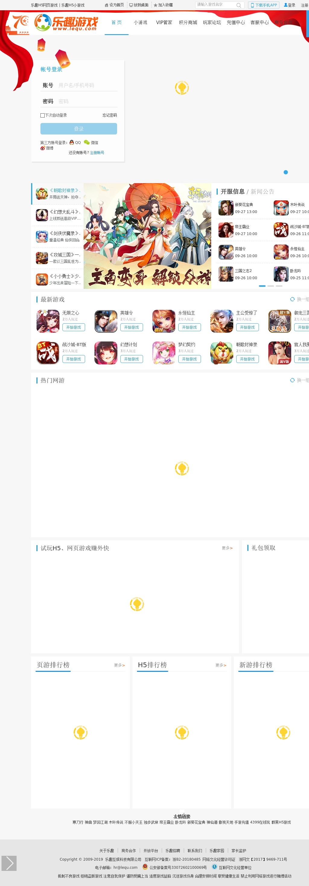 乐趣h5游戏平台是目前中国最大的h5手机网页游戏平台,提供在线玩的h5手机小游戏,最火爆的微信小游戏,最好玩的手机小游戏排行榜,让您能结识到h5游戏玩家和h5小游戏里的朋友,无需下载,点击马上玩!