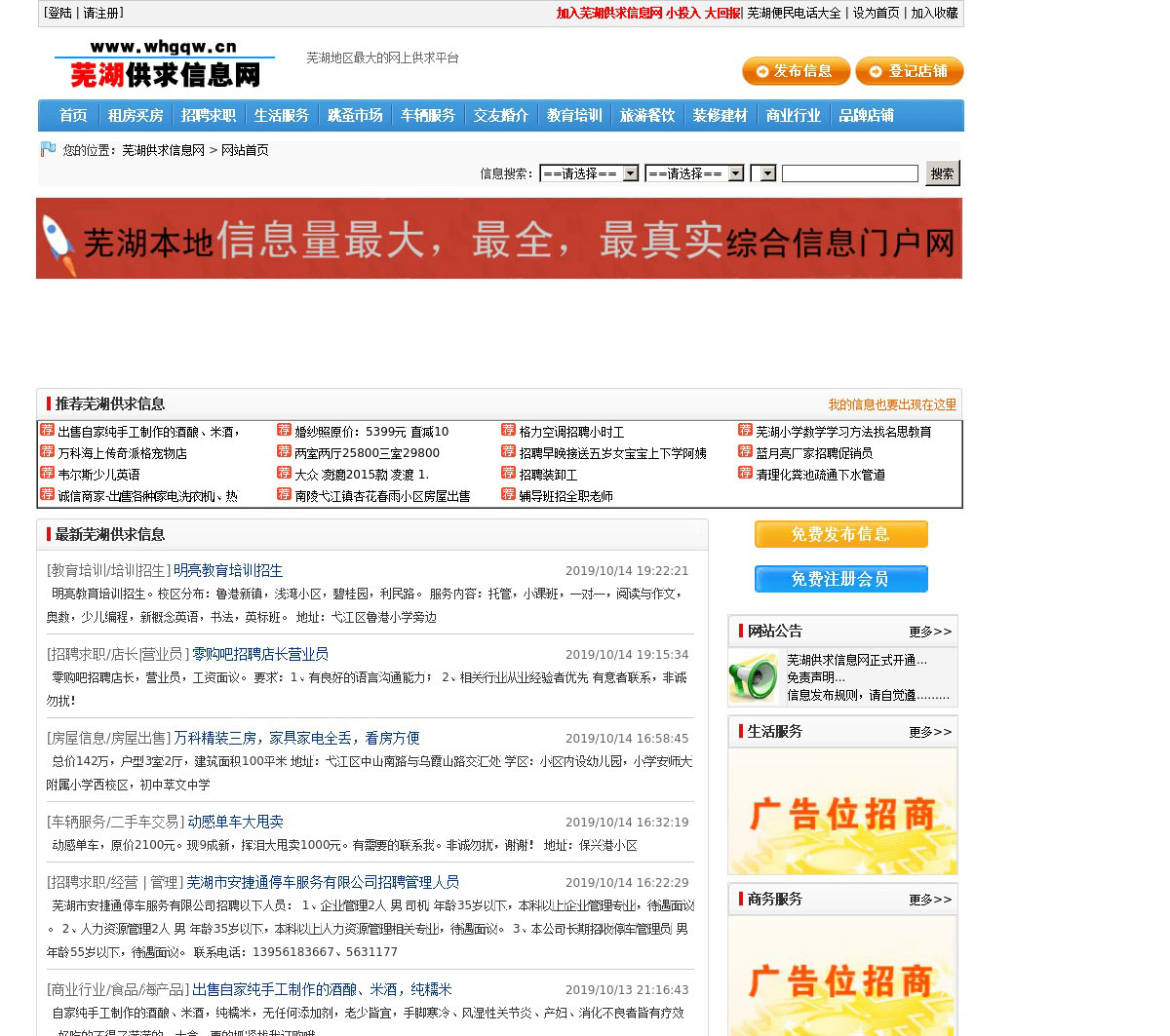 芜湖供求信息网为芜湖市民提供一个可以发布和查看供求信息的平台,在这里为芜湖市民提供芜湖生活分类信息,囊括芜湖供求信息,芜湖信息,芜湖分类信息