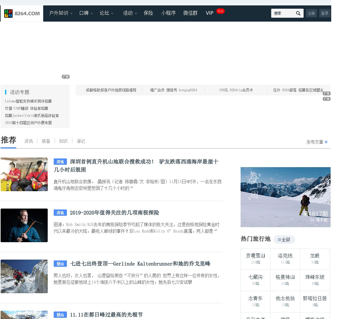户外运动,户外品牌,户外结伴,户外旅游,户外活动,出境游,国内游等综合指导平台,提供前沿户外攻略、户外知识,权威装备信息,千万用户真实点评,驴友交流论坛,海量户外活动综合平台,8264户外