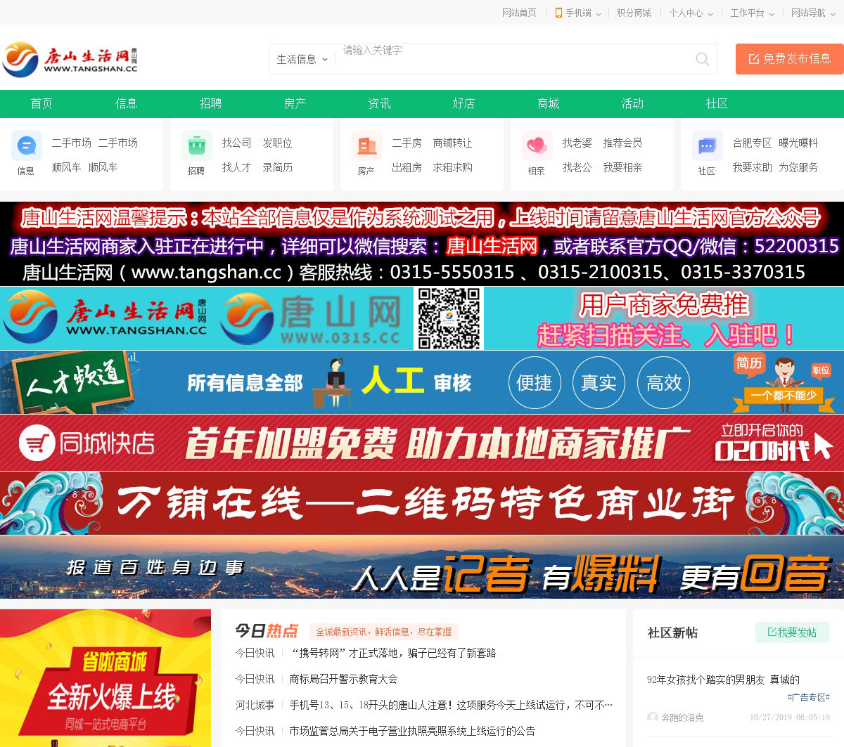 唐山生活网(www.TangShan.cc)是唐山本地的城市生活服务平台。汇聚唐山美食、唐山房产、唐山人才、唐山论坛、唐山信息港、唐山探店、唐山贴吧、唐山旅游、唐山购物、唐山交友、唐山结婚、唐山育儿、唐山租房、唐山招聘等话题!唐山网的目标:让唐山走向世界,让世界了解唐山! 丰润区路北区路南区丰南区迁安市古冶区迁西县玉田县开平区遵化市滦县滦南县乐亭县曹妃甸区