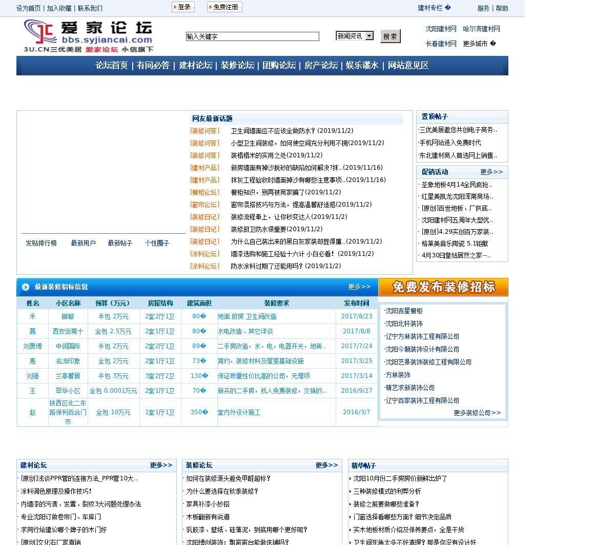 沈阳爱家论坛是沈阳建材网装修论坛和建材论坛分站,是沈阳装修公司、家装业主、建材商家的一个网上交流互动平台,全力打造辽沈地区最专业最火爆装修论坛。