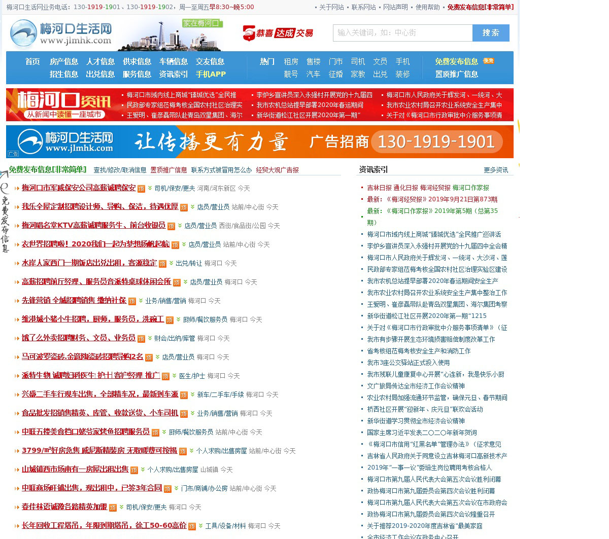 梅河口生活网(梅河口信息网),吉林梅河口生活信息网站。栏目设置:房产、人才、供求、车辆、交友、招生、出兑、服务、资讯。业务电话:--、--