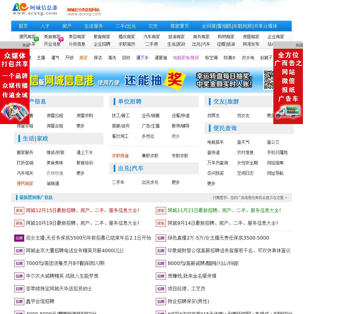 阿城信息港(www.acxxg.com)是阿城区的分类信息网站地方门户。下设:阿城房产网、阿城人才网、阿城搬家、阿城电脑、阿城家政、汽车、招聘、求职、美食等阿城网频道。