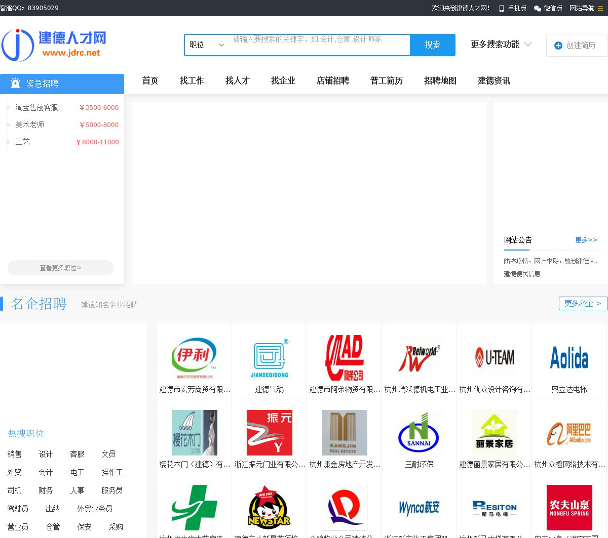 建德人才网(jdrc.net)是建德地区专业的招聘、求职、考试信息等人事人才服务网,是建德企业、商户的首选招聘平台。建德人求职,考证,找兼职,暑期工就上建德人才网!