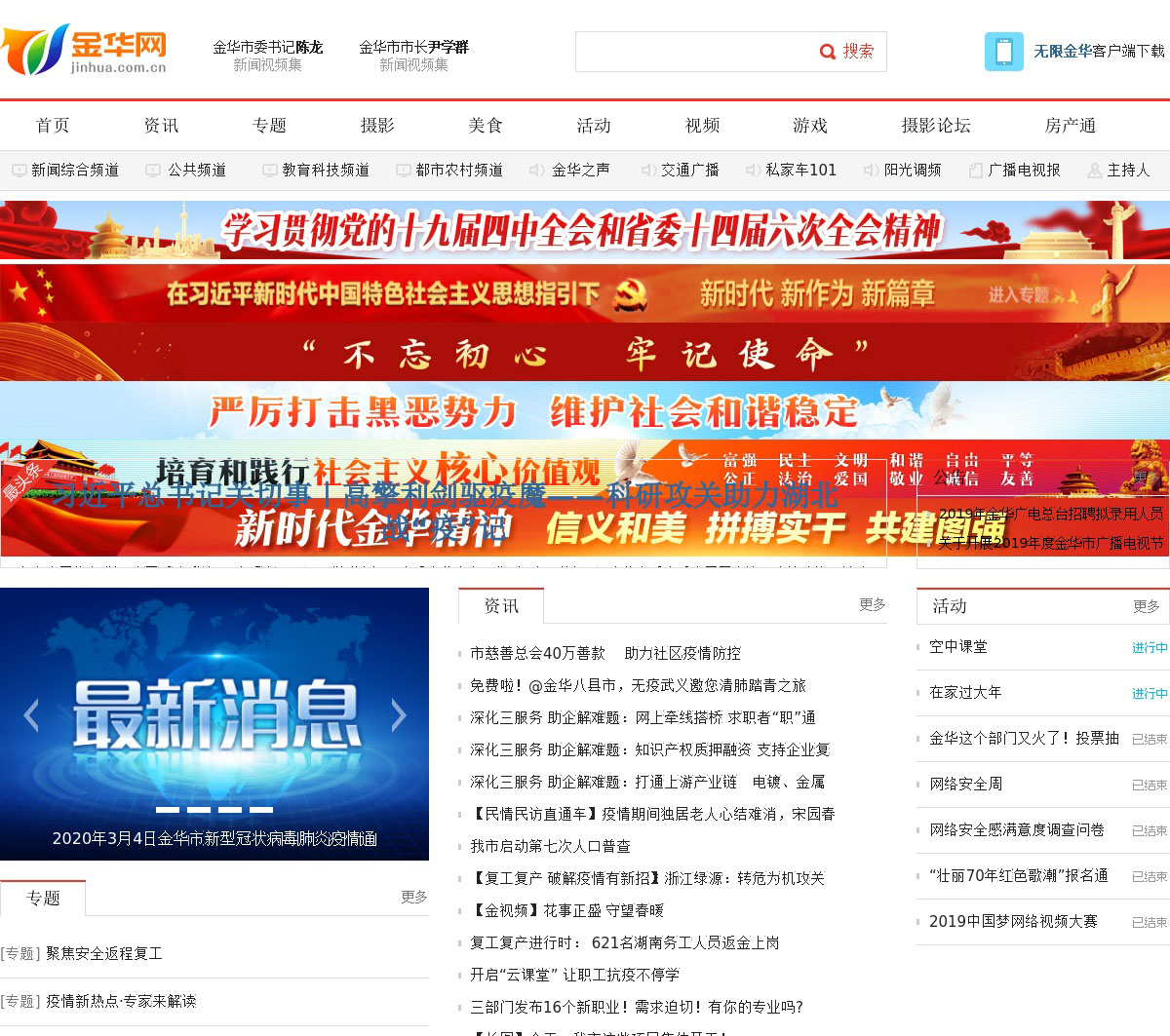 金华网是金华电视台主办的综合门户网站,提供金华各电视频道和电台节目的直播和点播,开办有新闻、摄影、美食、论坛等栏目,并且推出了广众网官方微博,微信公众号,无限金华app等服务。
