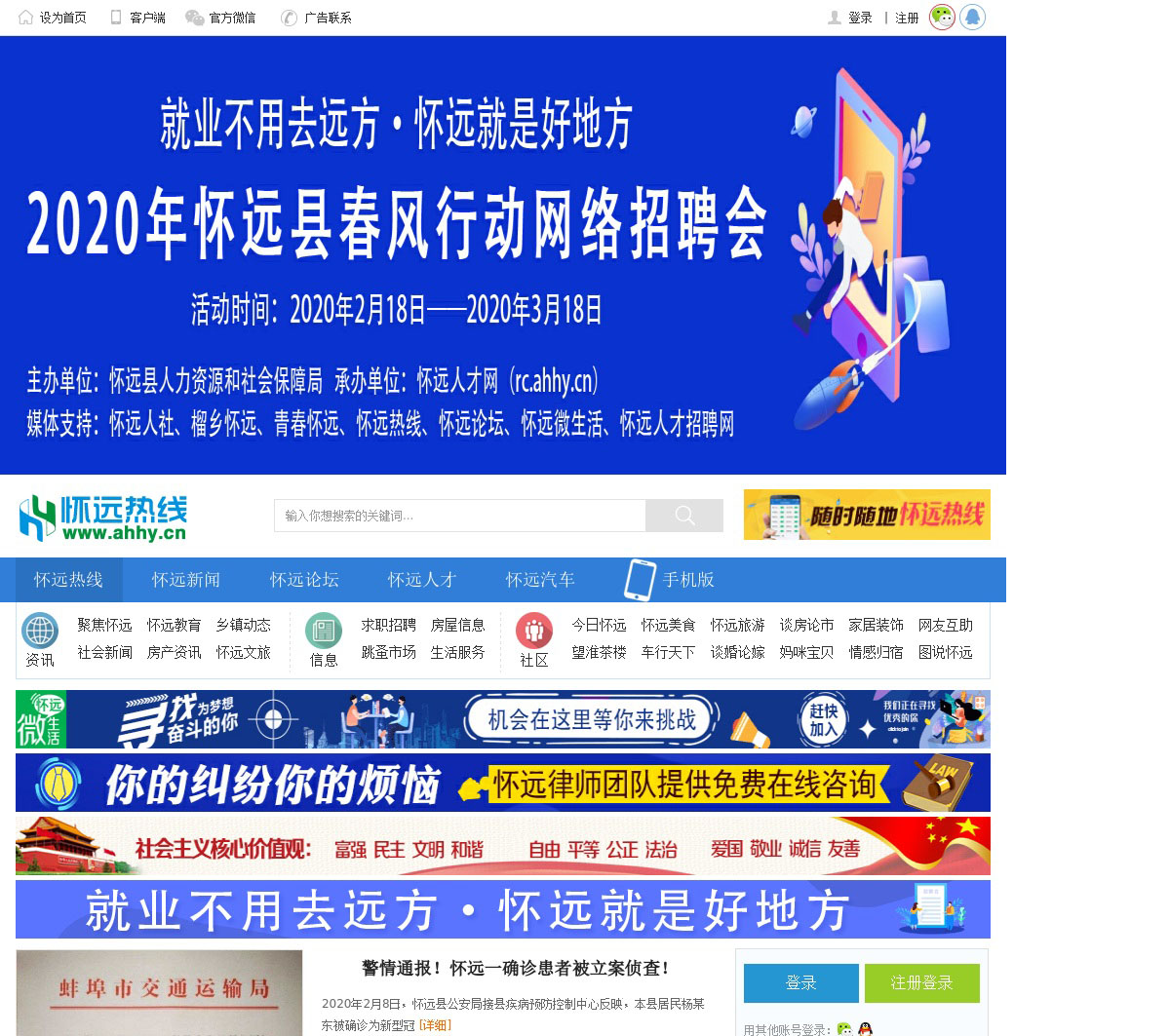 怀远热线(www.ahhy.cn)是安徽省怀远县地方门户网站,同时也是怀远县具有人气的生活社区和免费的网络家园;汇聚新闻、房产、家居、汽车、美食、教育、旅游、分类信息等