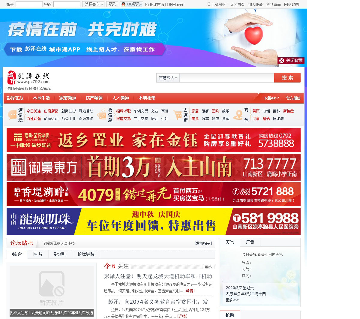 彭泽在线,彭泽县综合信息门户。提供彭泽概况、地图、旅游、特产信息,彭泽购物信息、企业黄页大全,彭泽房屋出租出售、二手交易、招聘求职信息、问事、法律在线服务、美食查询,社区论坛交友!